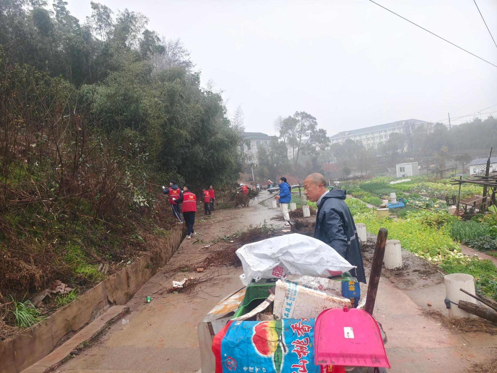 整治现场热火朝天,各村民小组亮点纷呈。月塘组重点清理寺冲坳道路两旁杂树,彻底清除菜土区域白色垃圾,让道路更加通畅、田园更加清爽;新基组聚焦沟渠清淤除杂,疏通排水通道、清理杂草杂物,同步开展文明劝导,将文明习惯宣讲融入整治全过程。经过集中整治,村内道路干净整洁、沟渠畅通有序、庭院规整清爽,村容村貌焕然一新。