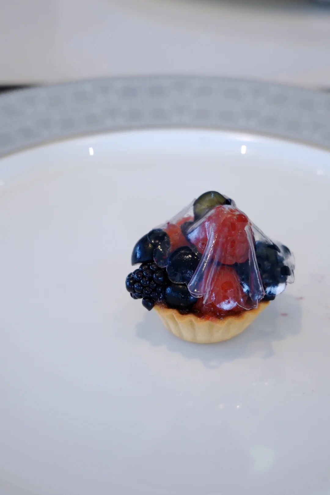 杏仁塔+鲜莓果+香草冻,裹着自制无花果酱,果香清润不腻,一口沦陷。