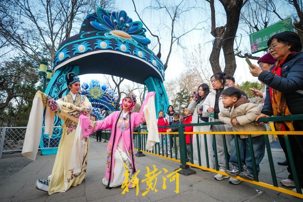 【趵突泉上演非遗快闪】2月13日傍晚,济南趵突泉公园“吕剧灯廊”花灯前,济南市吕剧院两位演员身着传统行头现场表演,与游人亲切互动、合影留念。非遗吕剧遇上璀璨花灯,为新春泉城增添浓郁文化年味,让游客在赏灯游园中感受传统戏曲魅力。详情>>-app/#/nsdjfsdkjk5566?catid=39&id=5217438(徐行)