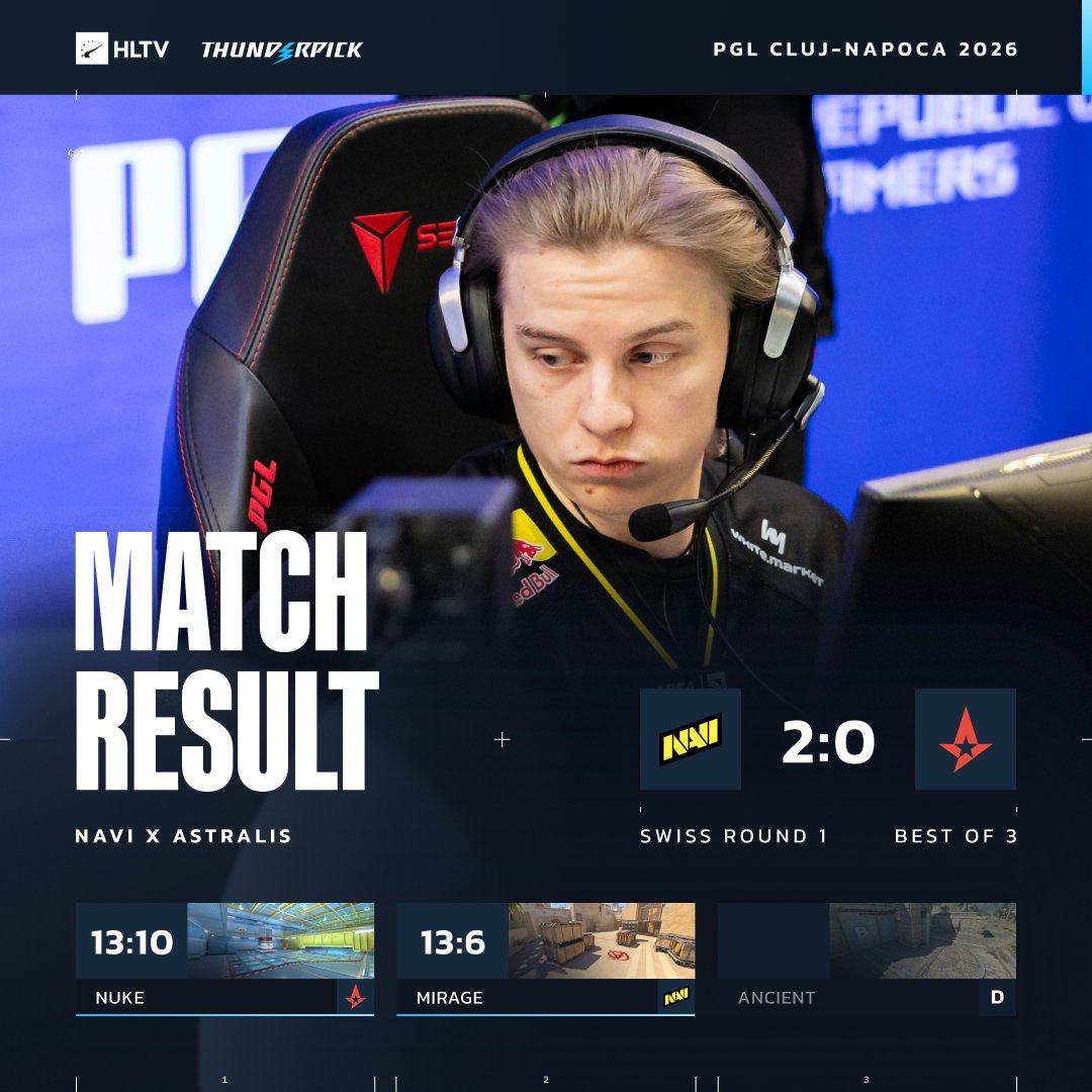 虎扑02月14日讯PGL克卢日-纳波卡站瑞士制小组赛首轮揭幕战:NAVI对阵Astralis