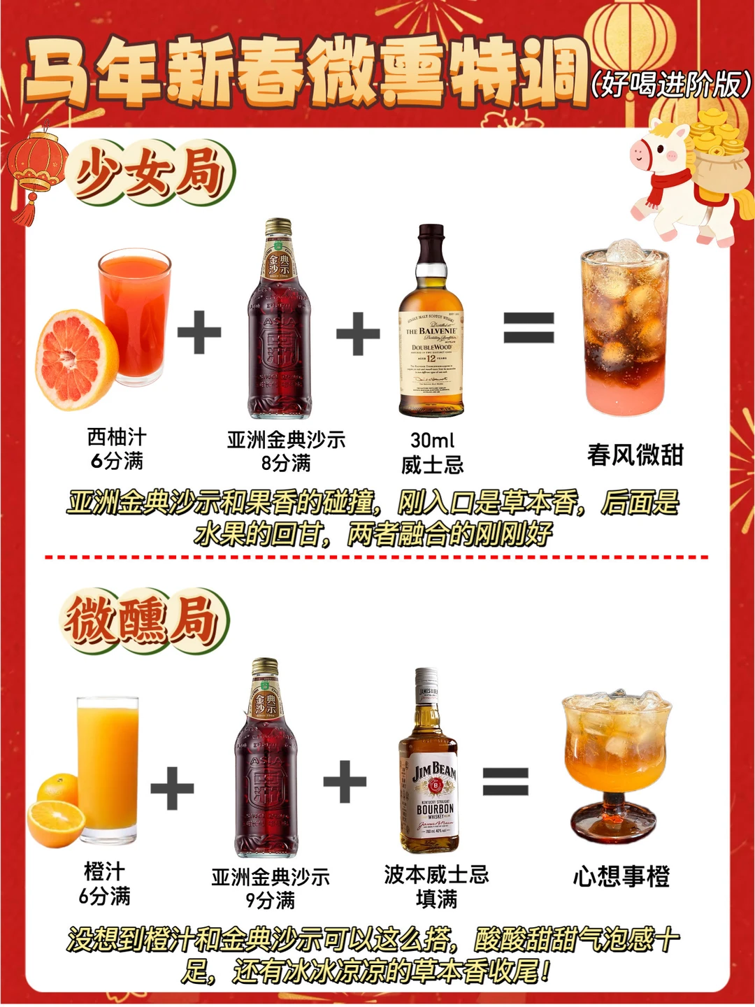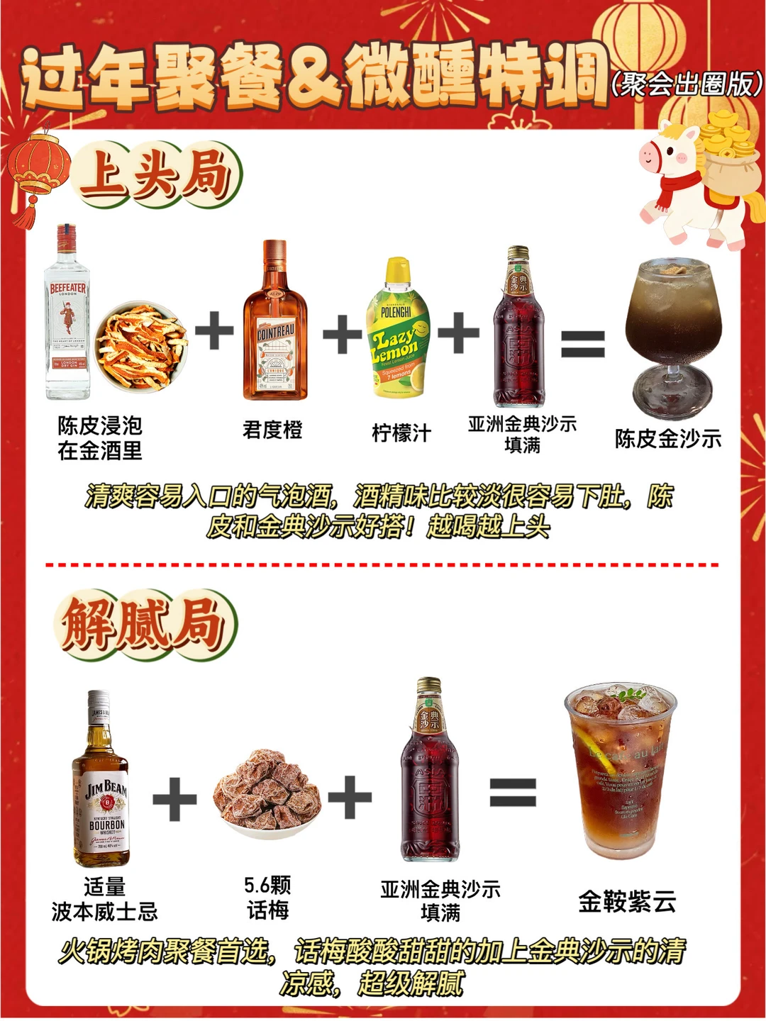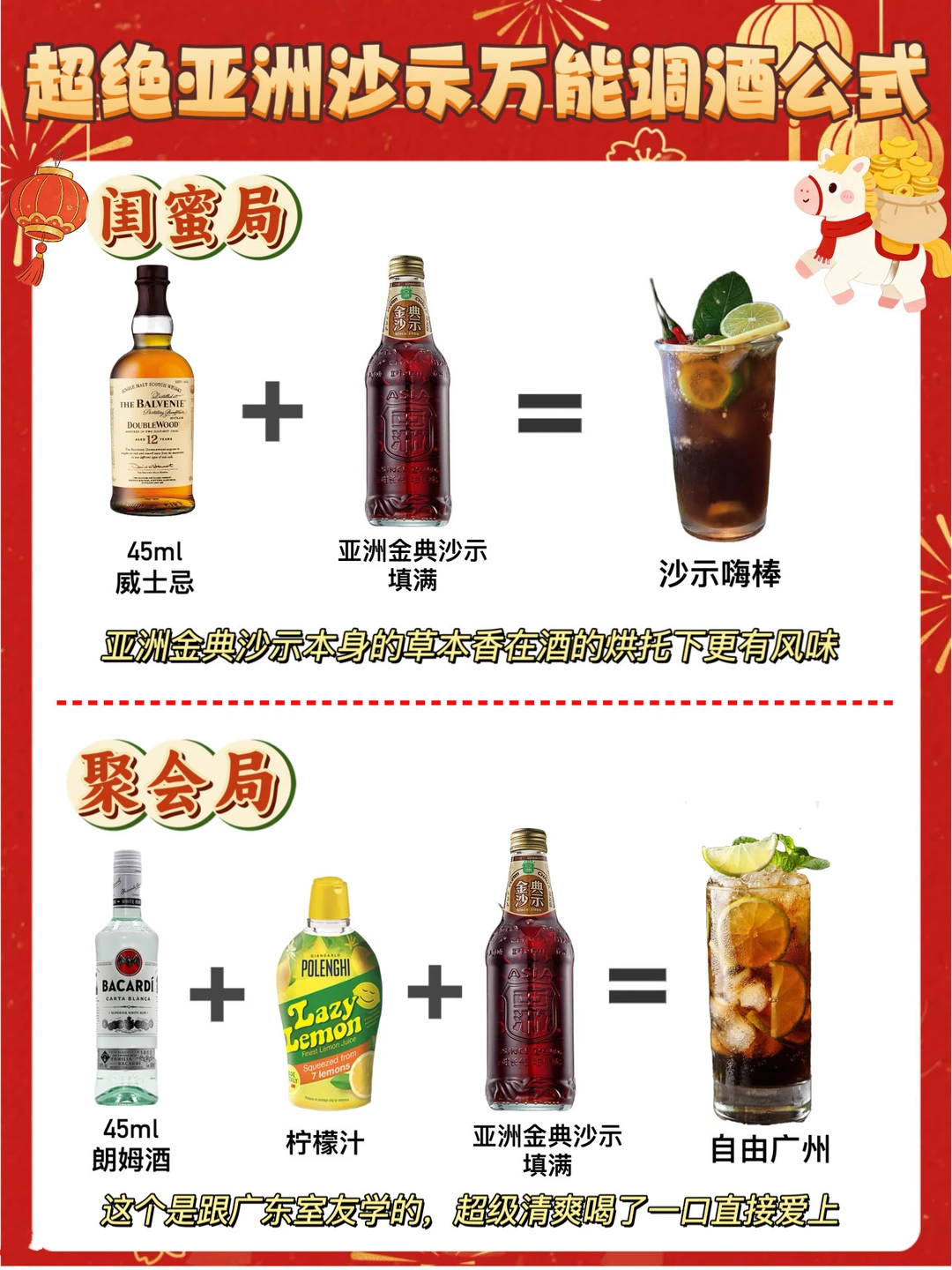 哈喽老婆们[doge]我是仔仔[害羞R],对于年货主理人来说,过年怎么能没有准备酒呢,只有到春节在各个城市奔波的朋友们在能聚在一起举杯共饮[派对R],开怀大笑,今天我整理了8款平常超喜欢的调酒公式[害羞R],有手就会不需要技术,而且还超好喝!!!超适合过年喝~