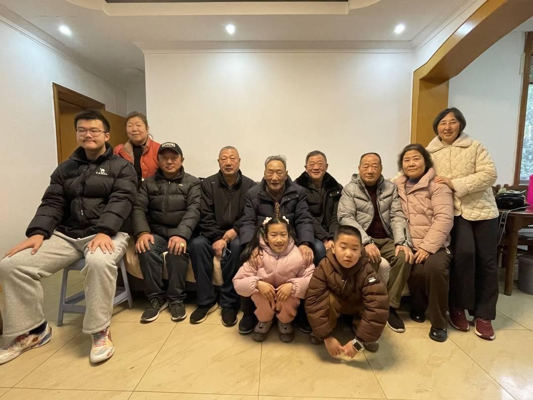 94岁的老人于庆发一家人在春节前合影留念