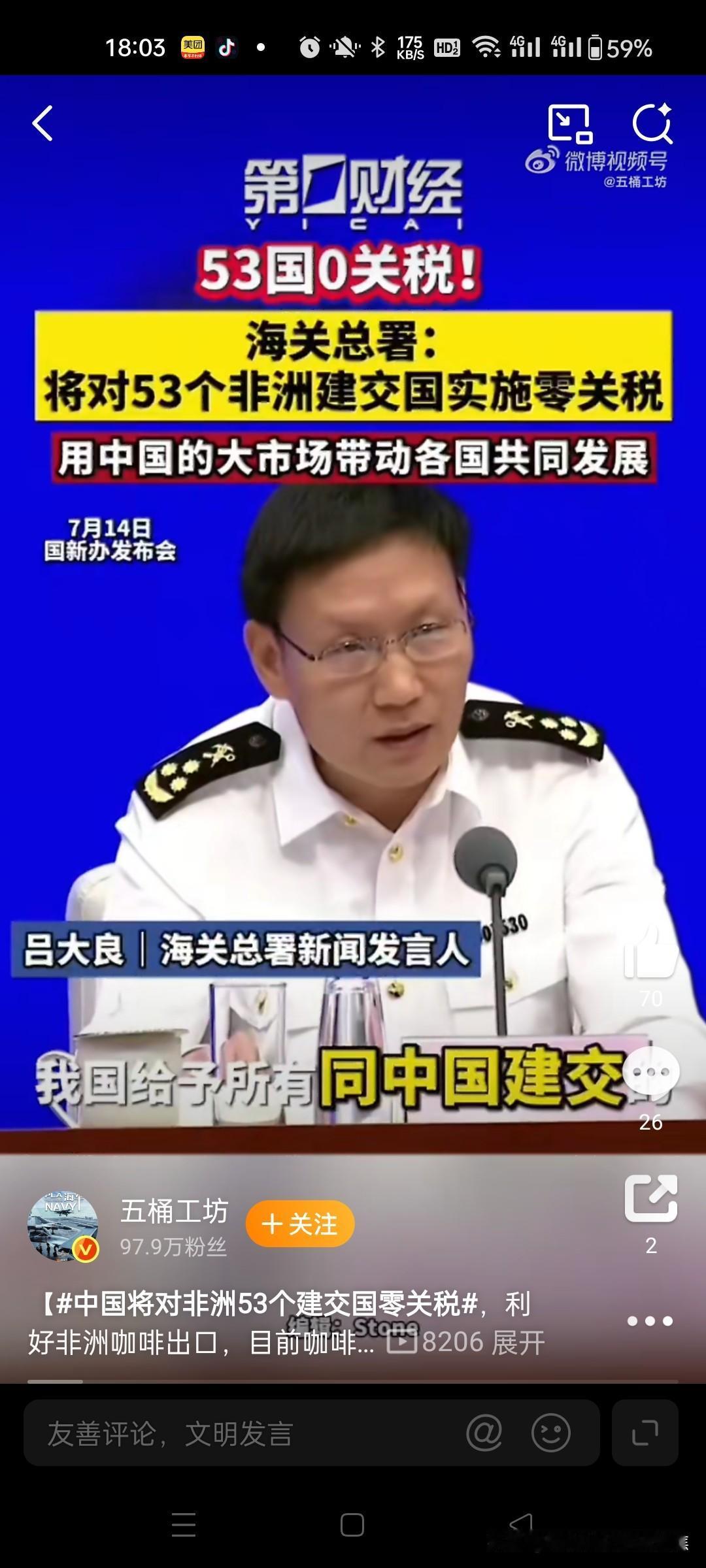中国对53个非洲建交国实施零关税!特朗普曾说我们实施10%的关税,我们米国更好。 中国对53个非洲建交国实施100%税目产品零关税的政策,是深化中非合作的关键举措,覆盖农产品、矿产等全品类,旨在通过单边开放市场推动共同发展。@人民日报海外...1人民日报海外版-海外网 一、政策核心内容与实施进展 覆盖范围与时间表 对象:除未与中国建交的斯威士兰外,所有53个非洲建交国均纳入零关税范围。@狗子的吹水站 税目:100%税目产品免税,包括咖啡、可可、矿产、农产品等全品类。 实施阶段: 第一阶段(2024年12月1日):已对33个非洲最不发达国家实施零关税。@新华社33 第二阶段(2026年5月1日):将扩展至所有53国,并通过《共同发展经济伙伴关系协定》提供制度保障。@北京头条27 创新合作机制 共同发展经济伙伴关系协定:以灵活模块化谈判(如贸易便利化、供应链韧性)落实零关税,截至2025年7月已与31个非洲国家签署。 配套措施:设立“非洲输华食品准入预评估制度”,缩短通关时间;在湖南自贸区打造非洲产品产业链,强化源头直采。大大大餅干丶财联社APP 二、政策动因与战略意义 回应非洲发展需求 非洲国家面临美国高关税挤压(如莱索托被征50%关税导致订单取消),零关税政策为其提供替代性出口市场。1535 推动非洲工业化:通过降低出口成本,促进当地产业链升级(如刚果钴矿直供中国电池企业,形成“采矿-精炼-全球销售”闭环)。@司马平邦 中国扩大开放的关键布局 市场优势:中国超大规模市场(2025年进口规模18.5万亿元)为非洲产品提供稳定需求,如咖啡进口额年复合增长率达41.9%。 全球治理角色:作为首个对最不发达国家全面免税的发展中大国,此举获世贸组织赞誉,被非洲集团称为“全球南方合作标杆”。@新时代中国外...司马平邦新时代中国外交思想库一个视频搬运工 三、实际成效与典型案例 贸易增长数据 零关税政策试行期间(2024年12月-2025年3月),中国自非洲最不发达国家进口额214.2亿美元,同比增15.2%。 细分品类爆发式增长:2025年一季度非洲咖啡、可可豆对华出口分别增长70.4%和56.8%;前5个月农产品进口额达158.3亿元。 产业合作深化 农业领域:卢旺达辣椒酱、肯尼亚牛油果等进入中国超市;埃塞俄比亚咖啡豆关税取消后,每吨成本降低320美元,推动云南咖啡产业技术升级。@五桶工坊 基建与就业:中国在非建设超1万公里铁路、78个港口,援建项目创造就业超110万个(如坦桑尼亚水产品加工厂、埃及苏伊士经贸区)。五桶工坊 四、国际反响与对比 非洲积极回应:非盟称零关税为“金色名片”,莱索托总统直言“中国给机遇,美国给关税大棒”。 中美政策差异:美国对非洲平均征收10%-50%关税,且削减援助;中国同步提供3600亿元资金支持、技术培训及产业链建设,形成鲜明对比。1535