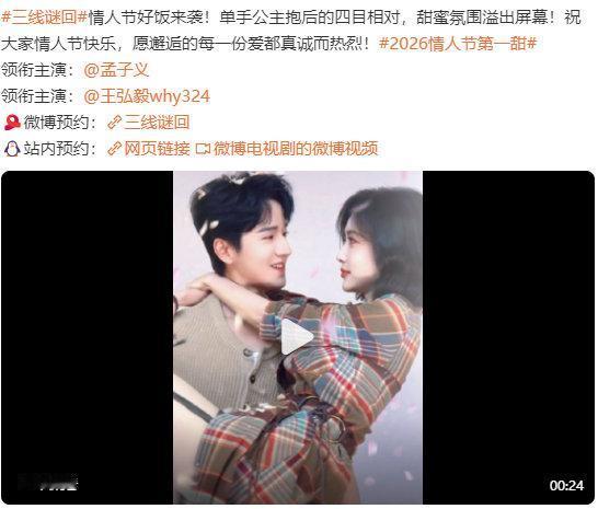 谁还没被孟子义王弘毅的情人节公主抱戳中?《三线谜回》这售后,太会了! 单手公主抱、害羞埋颈、摸头安抚……这对CP的甜度,在这组物料里体现得淋漓尽致。孟子义的灵动与王弘毅的温柔碰撞,每一个眼神、每一个动作都充满张力,让人忍不住梦回剧里的宿命感。 从物料里的甜蜜互动,到正片的期待,这对CP的化学反应,直接把期待值拉满。 反正我已经在静静的坐等《三线谜回》开播啦,这个情人节,有被甜到!