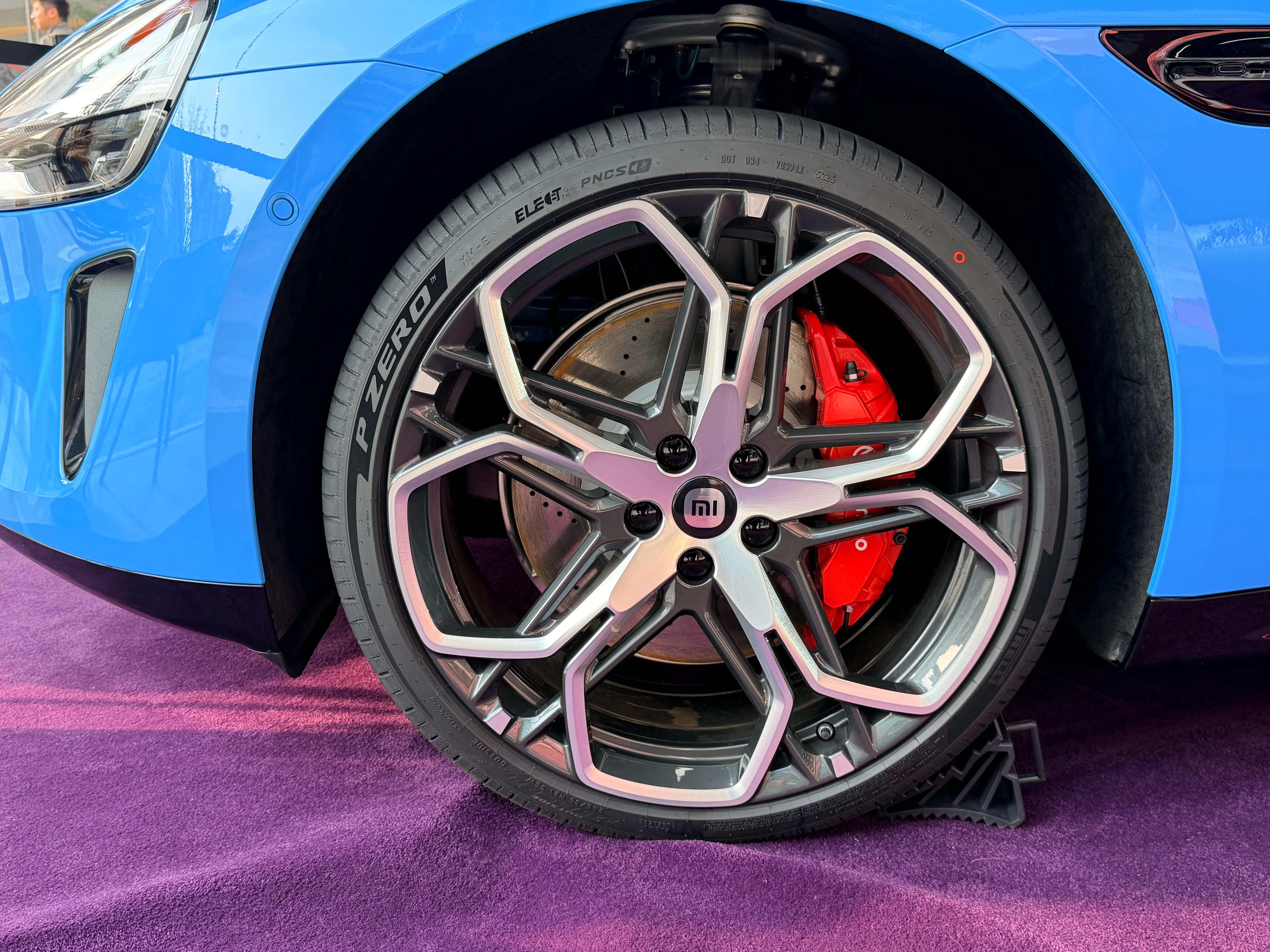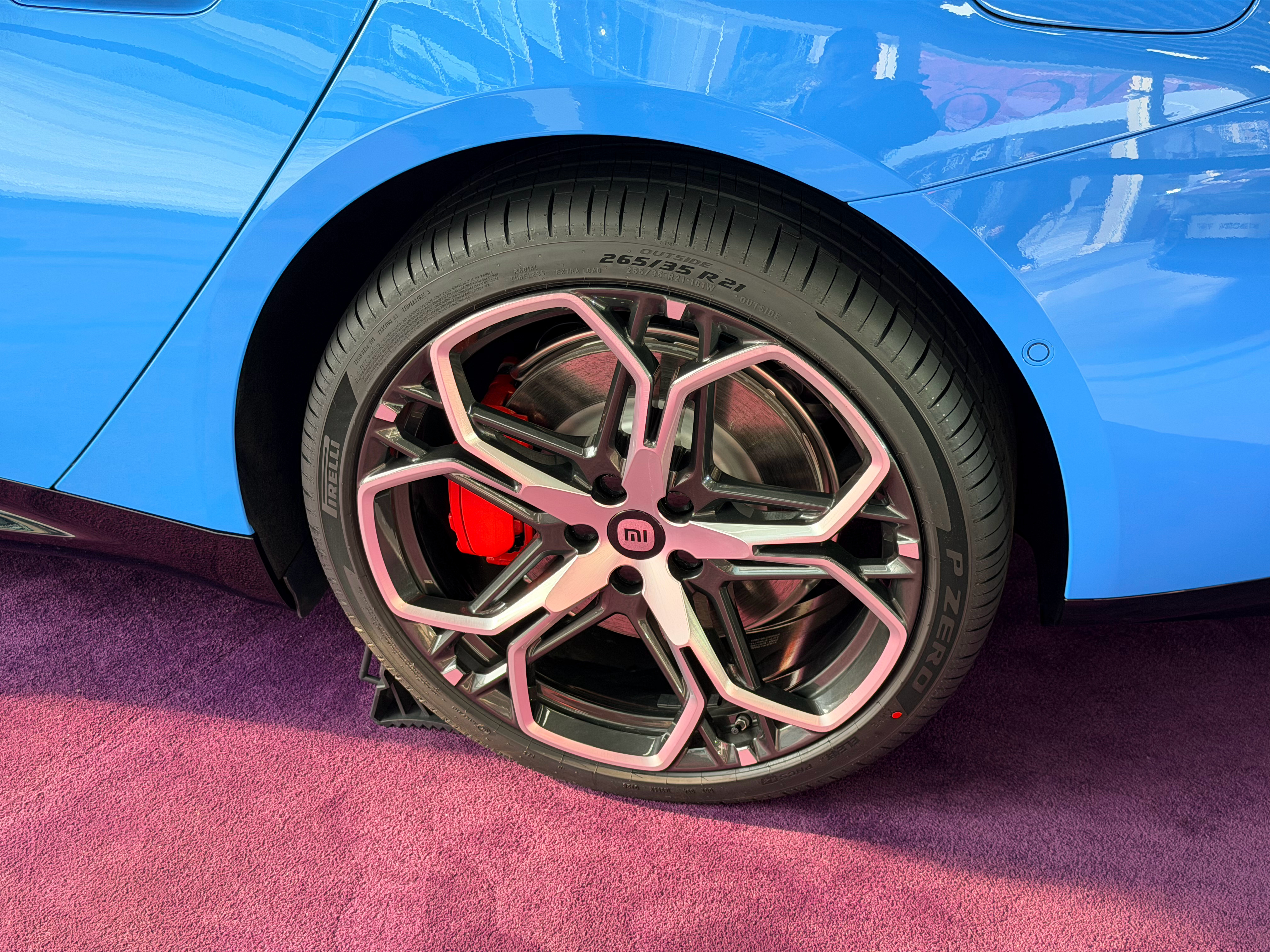 小米新一代SU7实拍,外观变化不大,全系标配激光雷达和Thor-U芯片,,MAX版本采用了黑色Logo和尾标,21英寸全新设计的轮毂。
