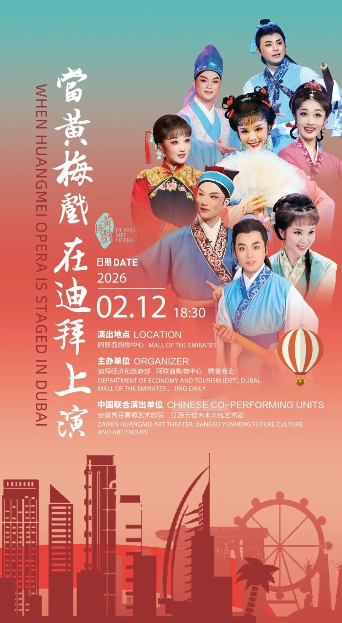 这不仅是一场艺术表演,更是一次以文化为桥的温情连接。当中国传统戏曲出现在全球商业场景里,文化的边界也被重新定义。期待在迪拜这座汇聚全球目光的都市,用黄梅戏的悠扬乡音,慰藉海外华人的新春思念;也通过这扇生动的窗口,让更多国际友人近距离感受中国传统艺术的魅力,让黄梅戏书写国际语境下的当代叙事。