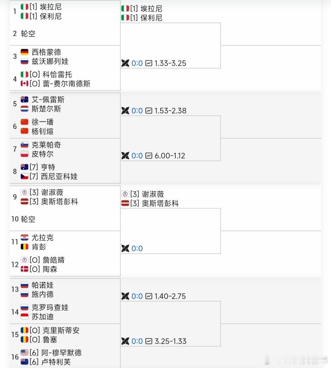 WTA1000迪拜站🇦🇪单双打签表均已出炉中国球员加油!郑钦文迪拜站首轮对阵