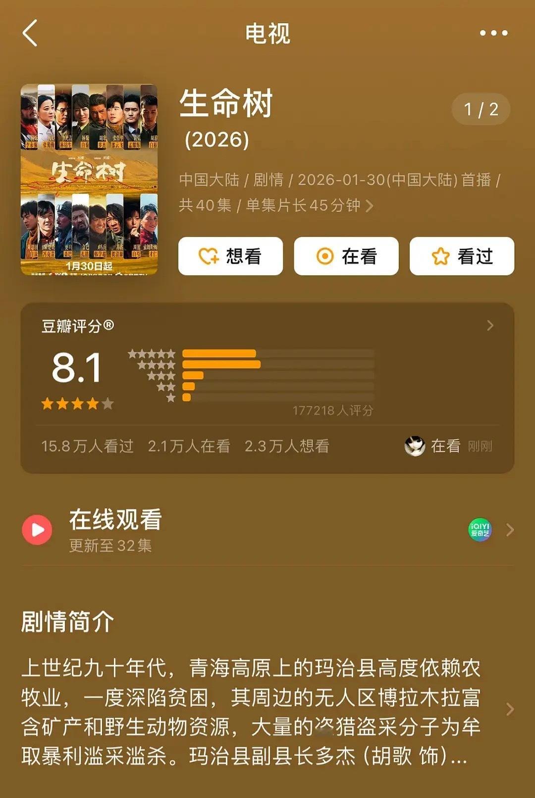 生命树豆瓣开分8.1太低了…生命树在我心里至少9.5分,多久没看到过🫘十几万人评分的首开了,我喜欢生命树的这句回应“高原之上,有人把信仰走成长路生命树,长在人心,立在山川”这是一场真正的观众与创作者的双向奔赴…