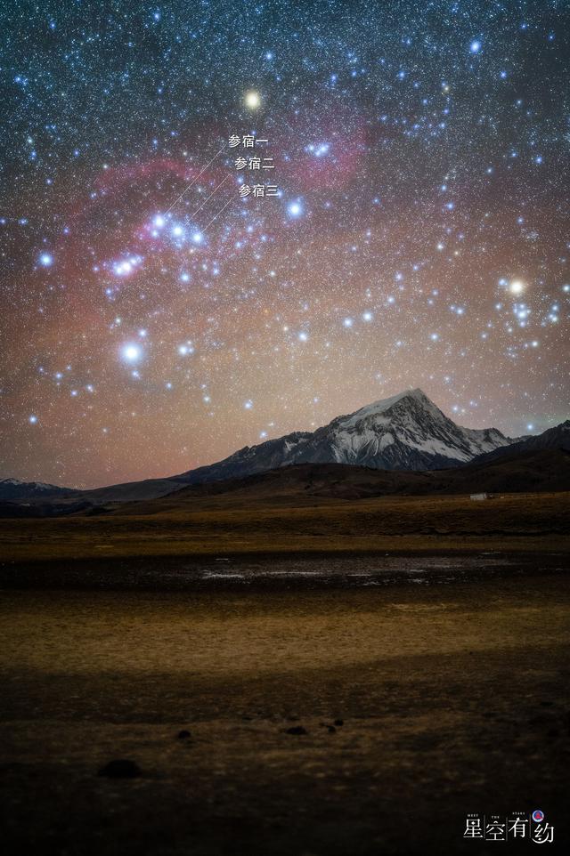 由于我国幅员辽阔,参宿三星升至正南方天空的时间会有所不同,但都是在上半夜。三星正南,新年来到,天地同庆,九州共欢。愿“福禄寿三星”给大家带去好运,岁岁常欢愉,年年皆胜意。