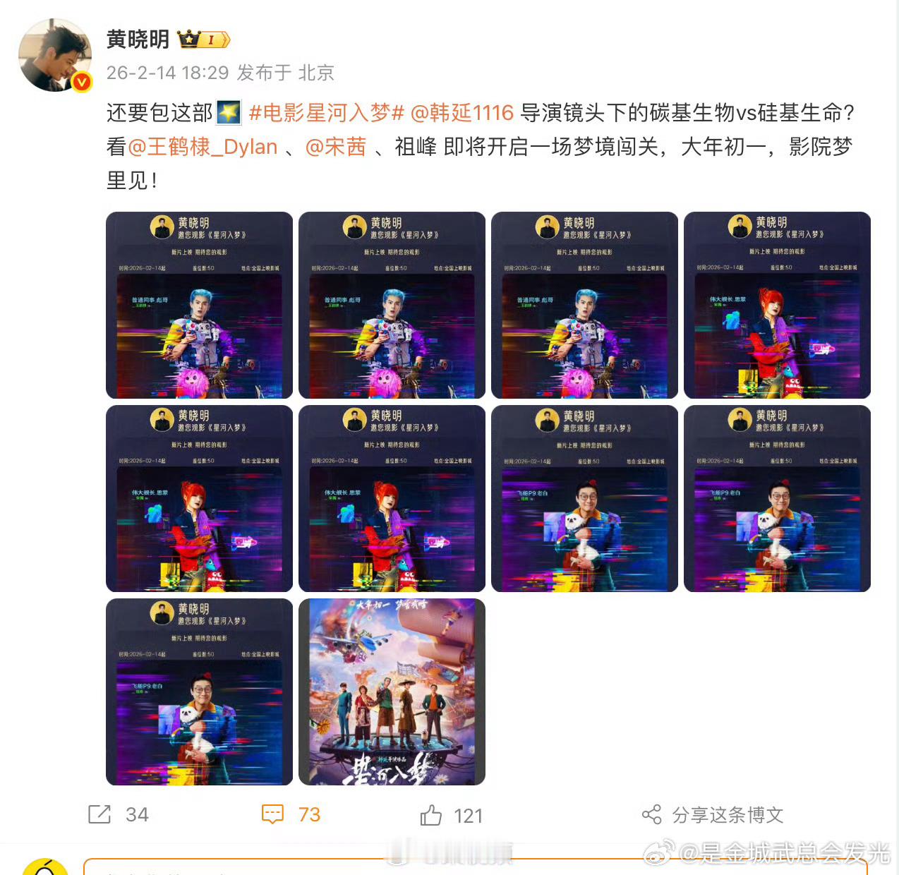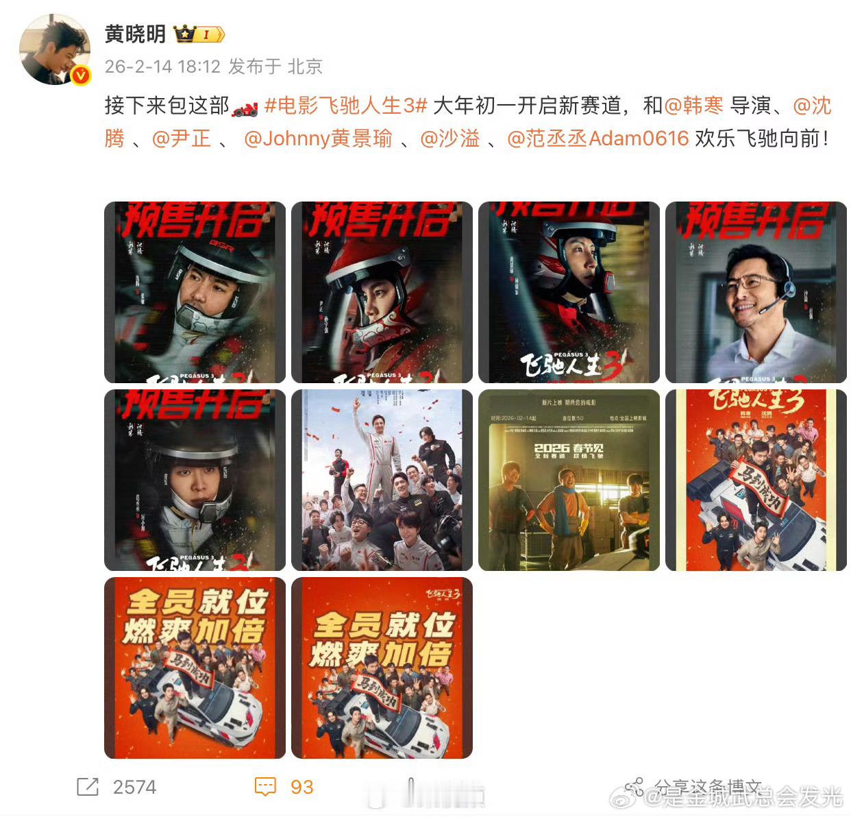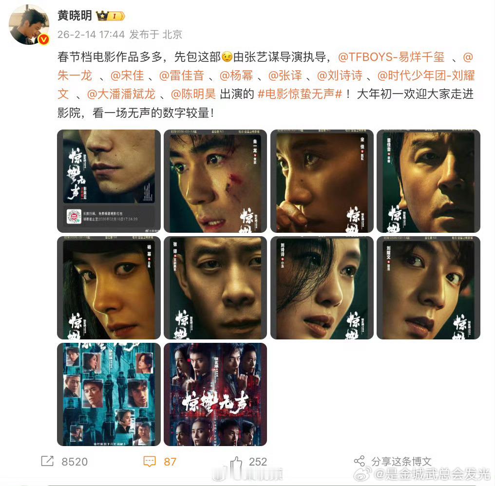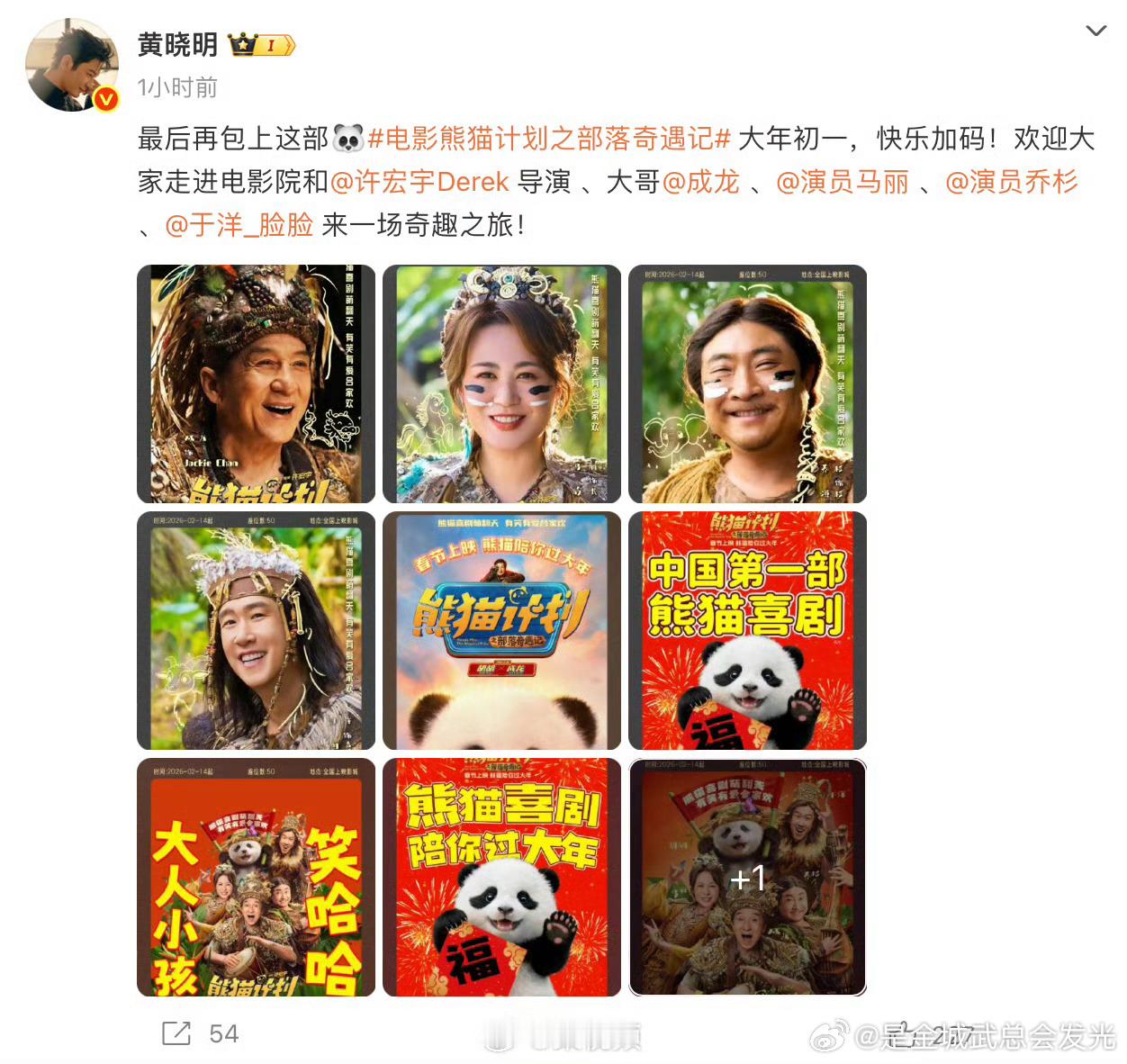 黄晓明包圆了春节档电影甚至文案都接上了,春节档目前预售了几部,黄晓明全包场了春节