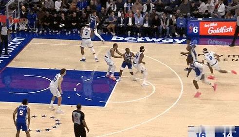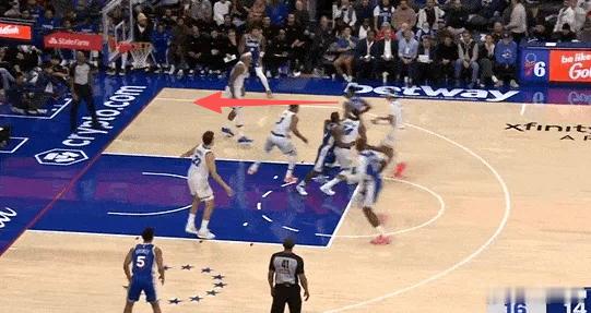 P15-16底线球回合追防借无球掩护兜至底角接球的哈迪,阅读到其将球举起准备出球后迅速跃起单手将球破坏。