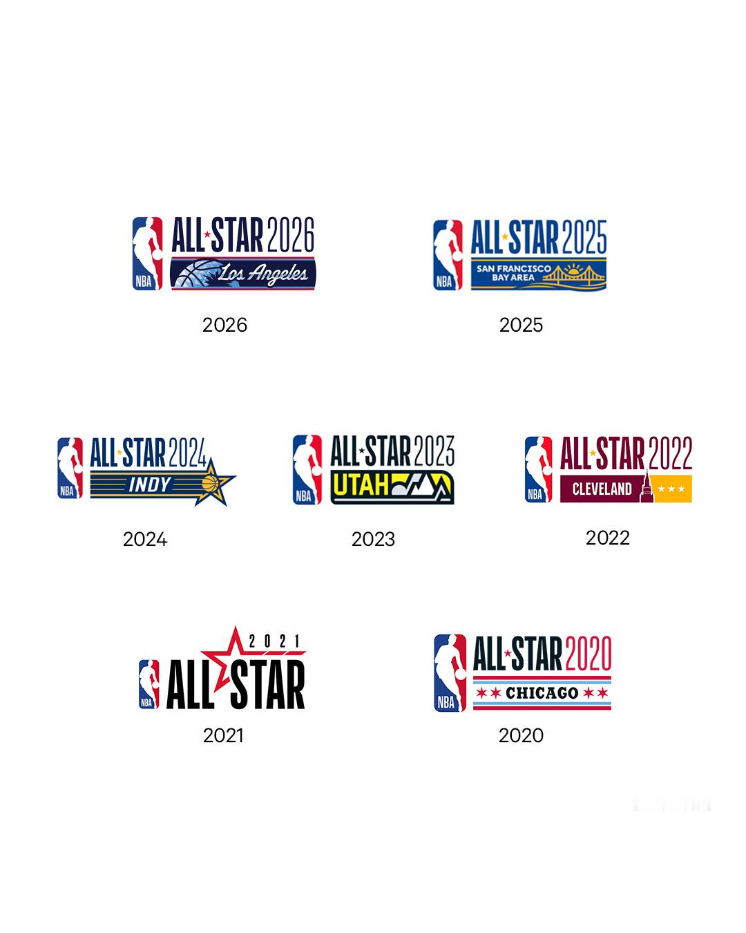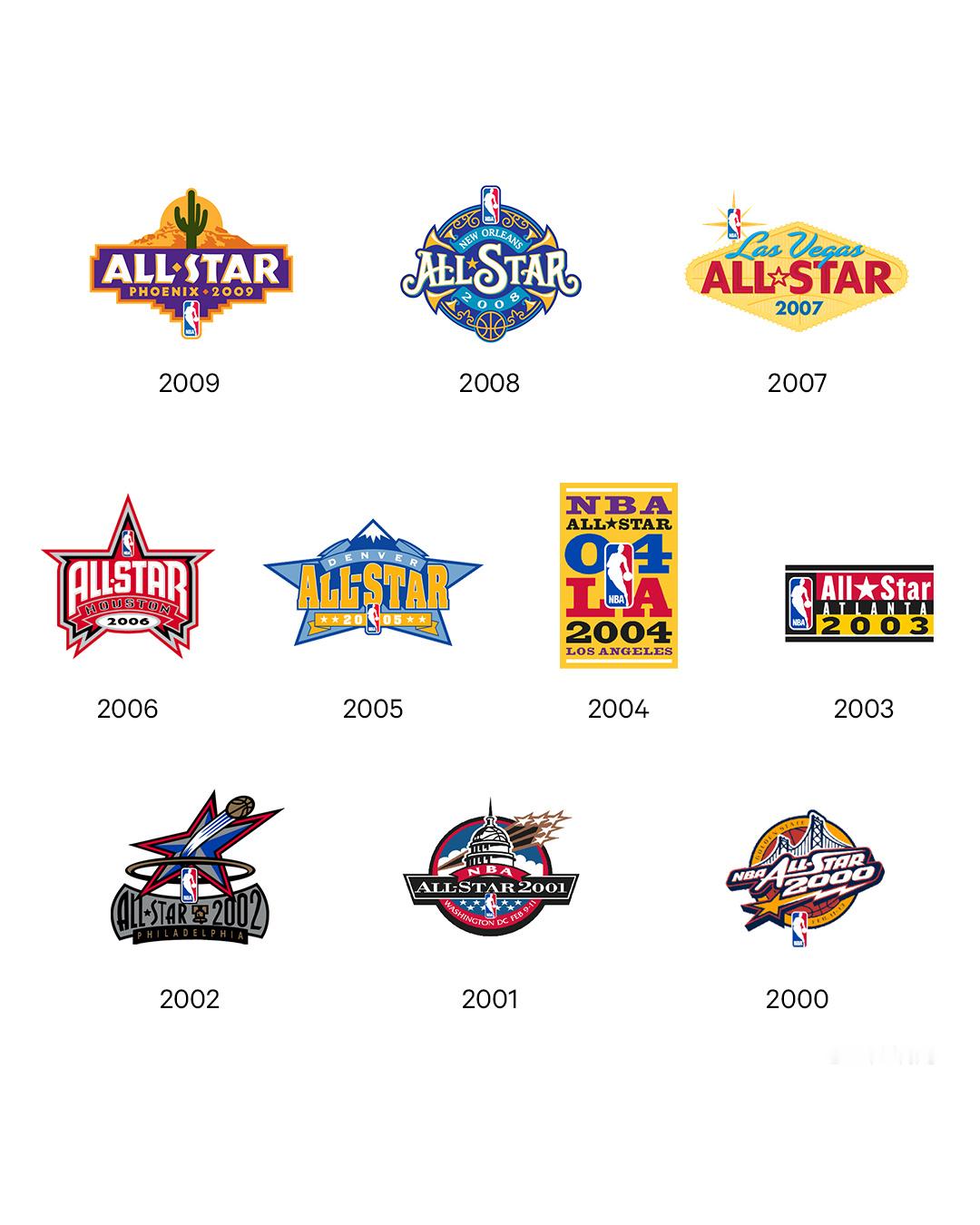 NBA历届全明星logo,2007年拉斯维加斯,杰拉德-格林飞跃牌桌。2016年多伦多,拉文&戈登世纪对决。 还有哪些看一眼logo就能想起?