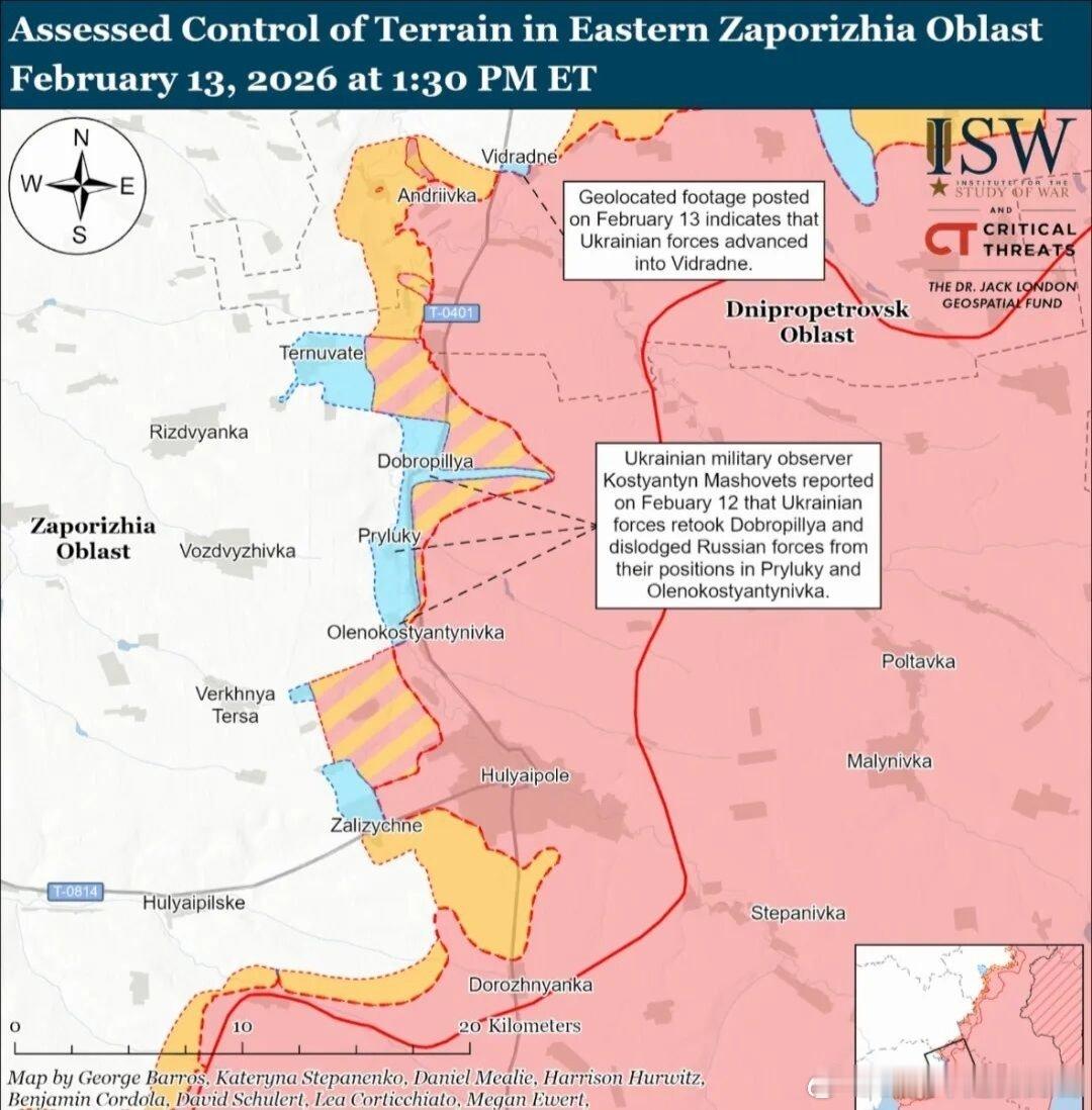 2月13日,乌打击了克里米亚半岛叶夫帕托里亚的俄军1套55Zh6U Nebo-U雷达系统,无人机袭击了半岛的俄赫瓦尔迪斯克军用机场和普里莫尔斯克的数据中心;乌空袭部队打击了扎波罗热州索洛德科沃德内和柳比米夫卡附近的俄军人员集结地,以及托克马克和米哈伊利夫卡的无人机部署点;在顿涅茨克州,乌袭击了塞利多夫的俄后勤仓库和科米舒瓦哈的1个俄装备集结地。此外,乌无人系统部队第一独立行动中心袭击了卢甘斯克州的俄基洛瓦电力变电站。