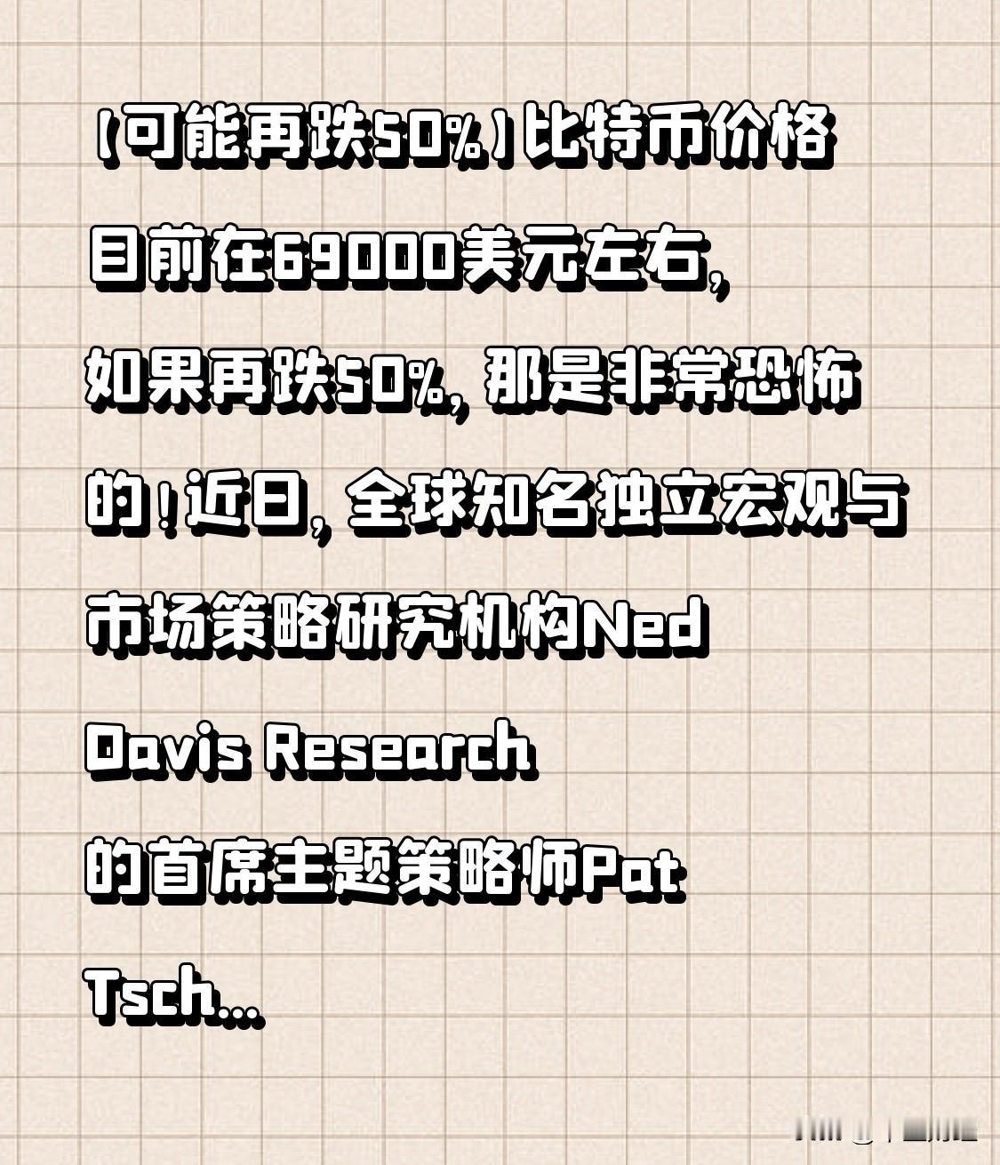 【可能再跌50%!】比特币价格目前在69000美元左右,如果再跌50%,那是非常恐怖的! 近日,全球知名独立宏观与市场策略研究机构Ned Davis Research的首席主题策略师Pat Tschosik和分析师Philippe Mouls表示,如果本轮熊市演变成一场全面的比特币寒冬,该加密货币的价格可能会跌至31000美元。 比特币如果暴跌,往往对商品期货以及汇率市场,股票市场,外汇市场形成重大的冲击,这种情况会出现吗?比特币行情 比特币价格 比特币陷阱 疯狂比特币 比特币机构持仓 加密货币行情