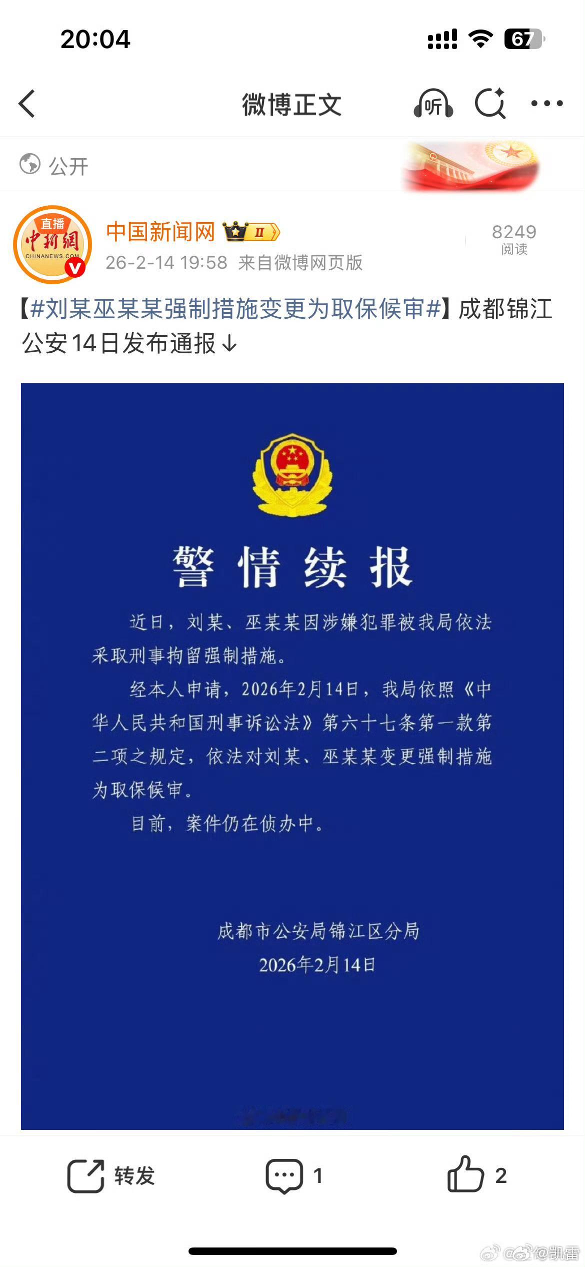 诚挚感谢社会各界的关心和监督。(成都发布)