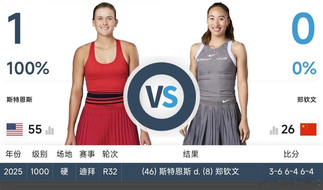 17:00左右 WTA1000迪拜站女单第1轮郑钦文🇨🇳 vs 斯特恩斯🇺🇸