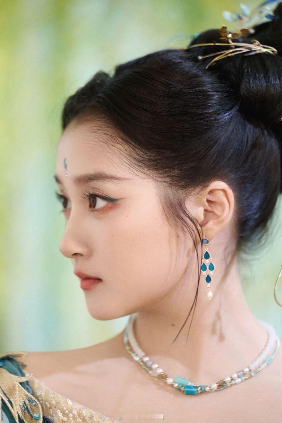 关晓彤青绿国风扮相 看到关晓彤的青绿国风扮相才懂什么叫画卷里走出来的佳人,精致的