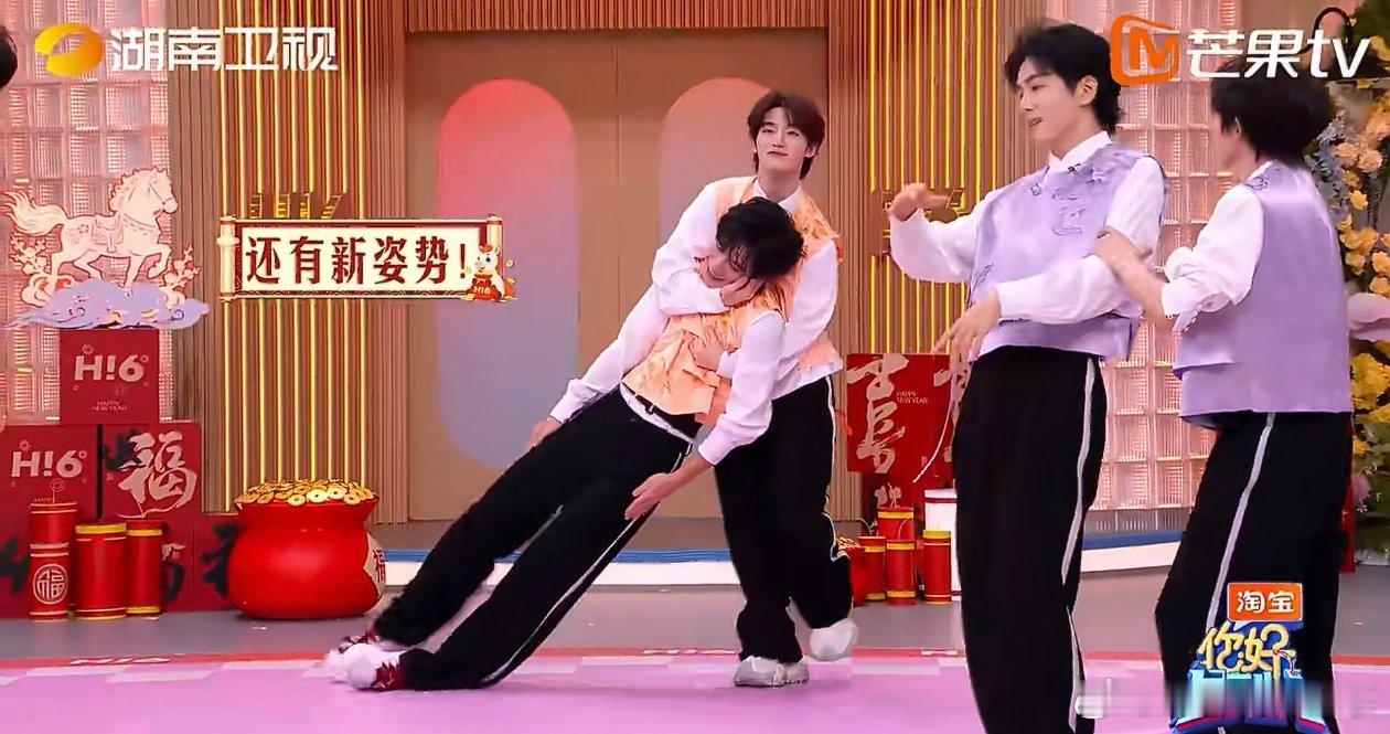 张颜齐忙了一通全白忙你好星期六 在“热舞迎春”环节,张颜齐领舞时大秀高难度,风采