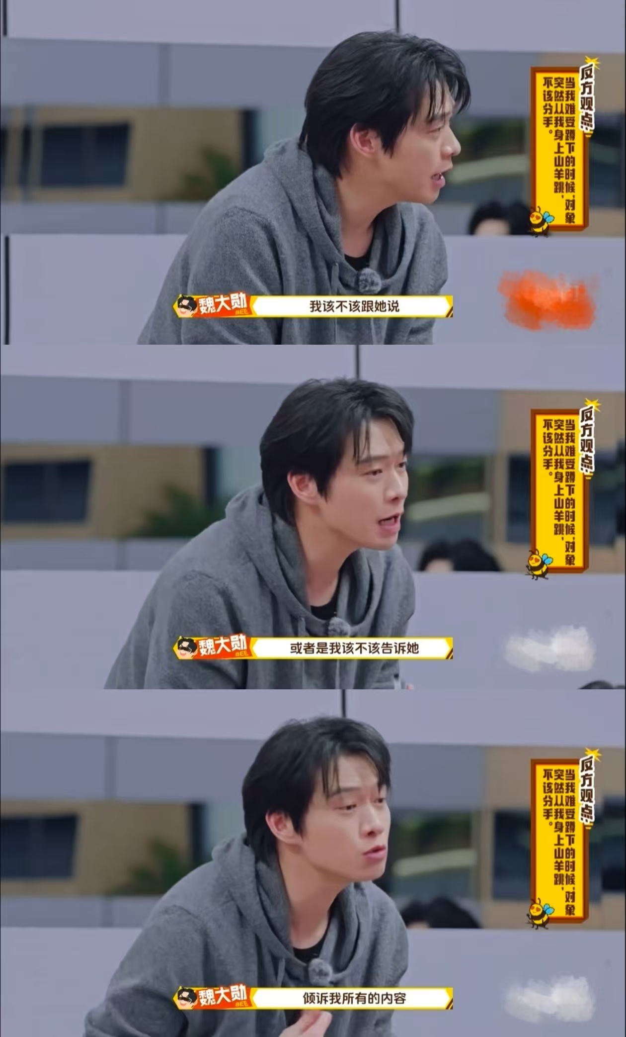 魏大勋 年上引导型恋人魏大勋在感情议题上温柔又通透。强调分手沉重需慎选,不轻易说