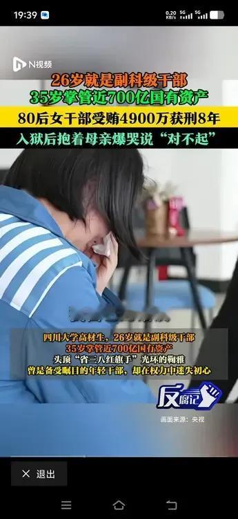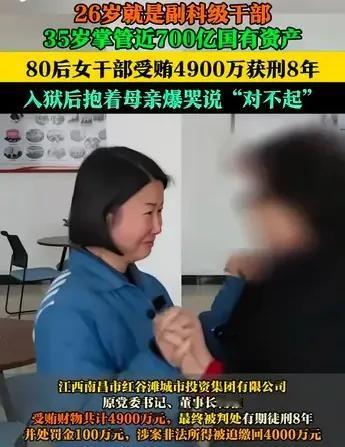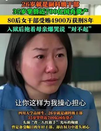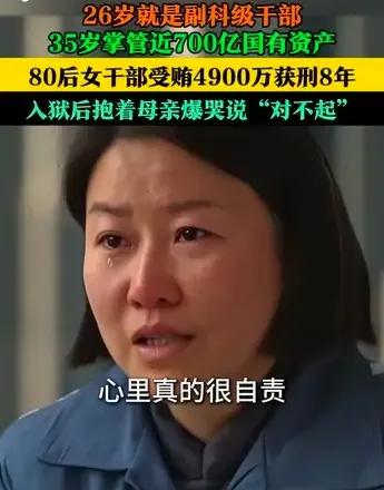 八零后女干部受贿4900万获刑8年,入狱后抱着母亲暴哭,说:对不起,当你把我的党徽摘下来那一刻,我的心都空了。 我应该克制自己的贪欲,我对不起我的妈妈,对不起她多年的培养,我怎么就忘了初心呢? 她的悔过又带着几分真心呢?被抓之后的痛苦和悔恨,又有什么用呢?