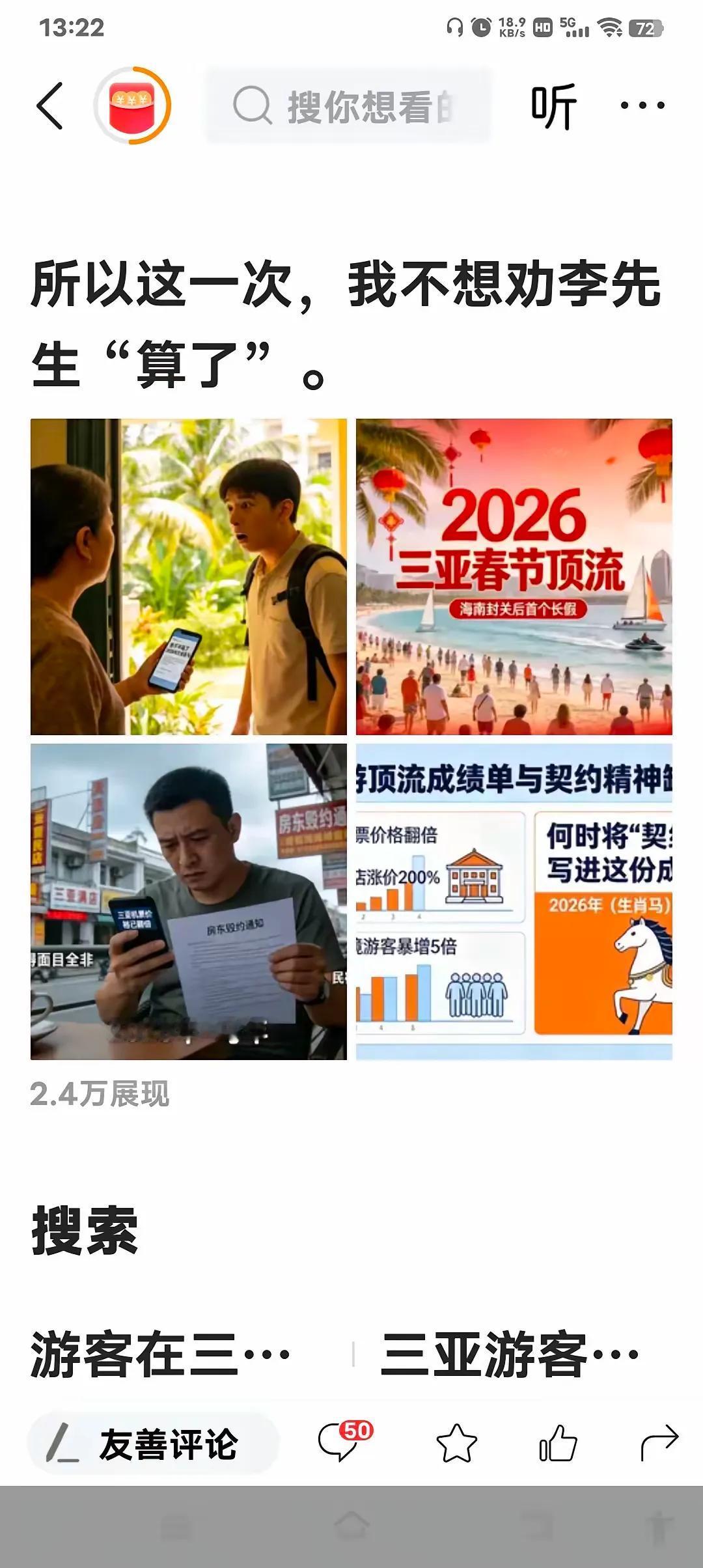 8499元订19晚民宿被单方取消!三亚火速出手:先行赔付+全网下架,太解气 游客李先生提前半年,花8499元锁定三亚海棠湾民宿19晚,机票行程全敲定,临出发却被一句“订单取消”砸懵。没有协商、没有补偿,只因为春节房价翻了三四倍,房东想毁约重卖,赚快钱。 这种事真的太让人窝火,提前大半年规划好的假期,就因为房东想多赚点钱,说毁约就毁约,连最基本的契约精神都没有。不少游客都遇到过类似情况,旺季一到,民宿酒店就找各种理由取消低价订单,转头用两三倍的价格重新上架,吃准了游客临近出行没时间扯皮,只能被迫接受高价房。 三亚这次的处理方式真的说到了大家心坎里,没有和稀泥,没有拖延推诿,直接启动先行赔付,让游客不用自己来回折腾维权,还把涉事民宿全网下架,从源头上掐断这类无良商家的生存空间。旅游城市的口碑,从来不是靠旺季宰客赚快钱攒下来的,而是靠守规矩、讲诚信留住人心。 民宿行业靠着灵活、亲民的优势快速发展,本该是游客出行的好选择,可偏偏有少数商家只顾眼前利益,把订单当儿戏,把游客当“韭菜”。这种行为不仅坑了消费者,也拉低了整个行业的信誉,更给旅游城市抹黑。订单一旦确认,就是受法律保护的合同,单方面取消就是违约,绝不能用一句“没房了”“系统错了”就轻松搪塞过去。 只有监管够硬、平台够严、商家守规,游客才能放心订房、安心出行,不用再担心假期被“毁单刺客”打乱。 各位读者你们怎么看?欢迎在评论区讨论。