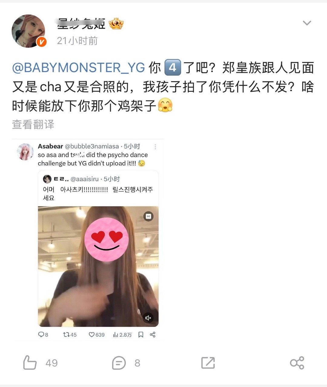 郑雅贤纯私下好友见面逛街都成皇族了 说这话之前自己笑了多久?况且人家原视频里也没说和阿萨拍“psycho cha”吧 怎么就yy上了阿萨唯一一个cha还是蹭的老七的 丢🪷不