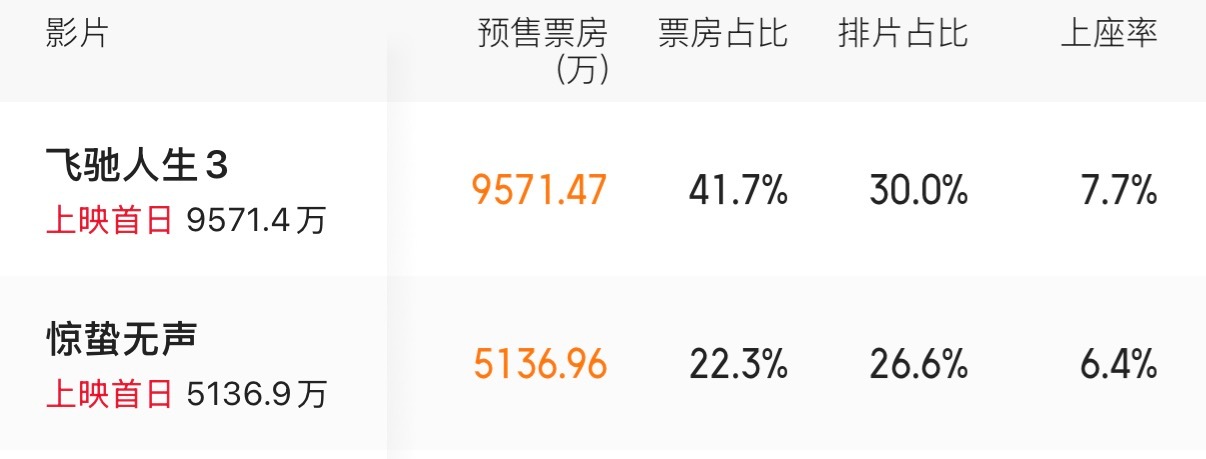 电影《惊蛰无声》大年初一预售票房是《飞驰人生3》的一半,首日排片只少3%,说明发