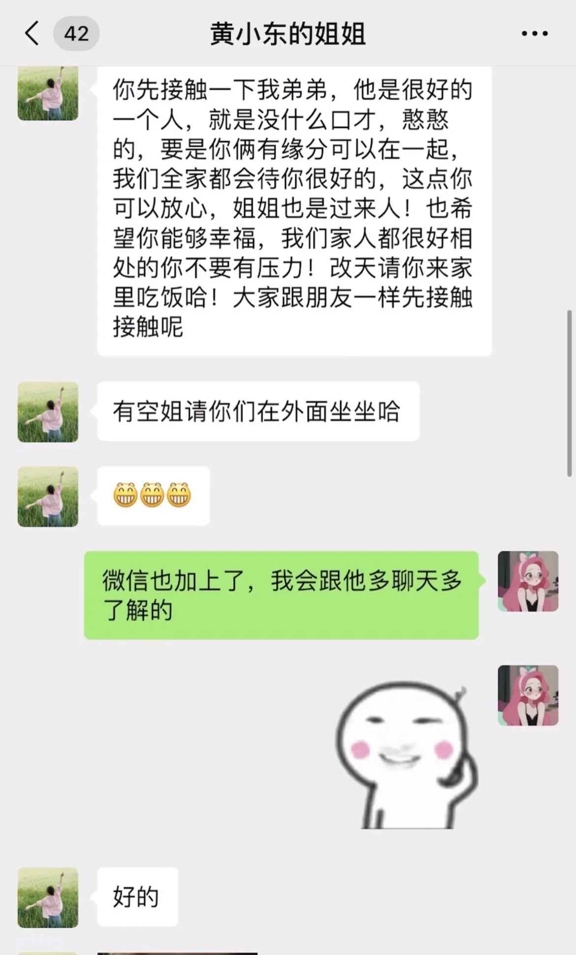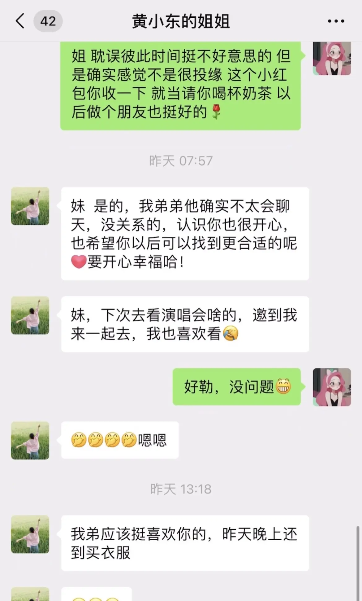 95年的相亲对象本来想约我爬山不知道怎么开口,就让他姐姐发信息约我,仔细考虑后便礼貌回绝了,并把见面吃东西的钱A过去了