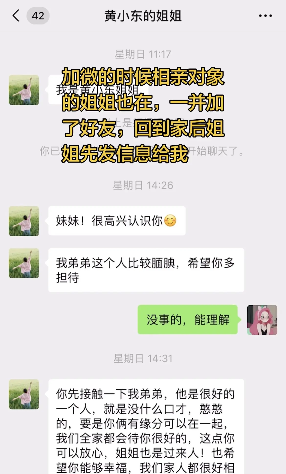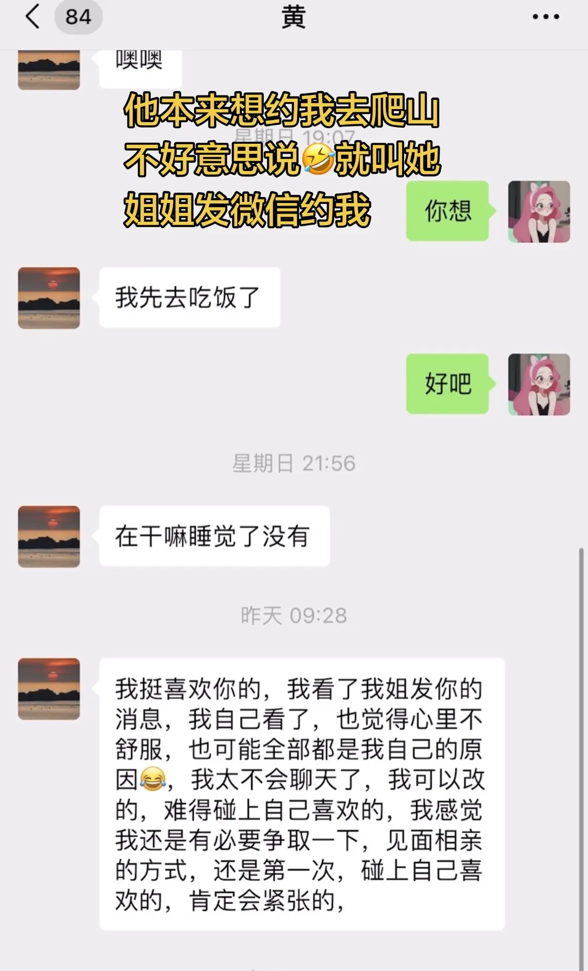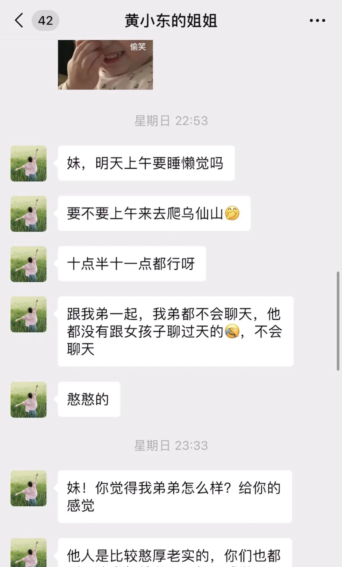 95年的相亲对象本来想约我爬山不知道怎么开口,就让他姐姐发信息约我,仔...