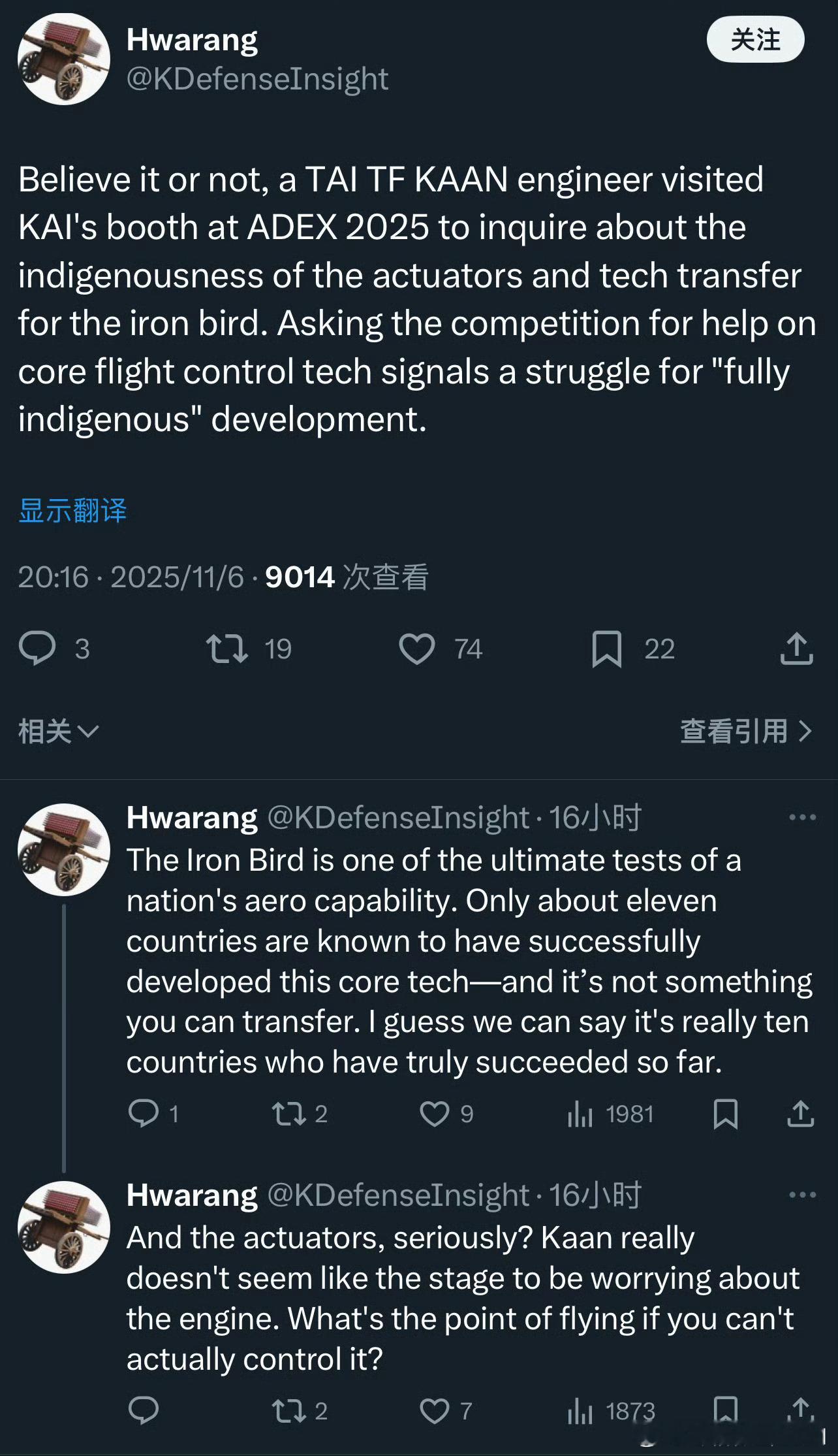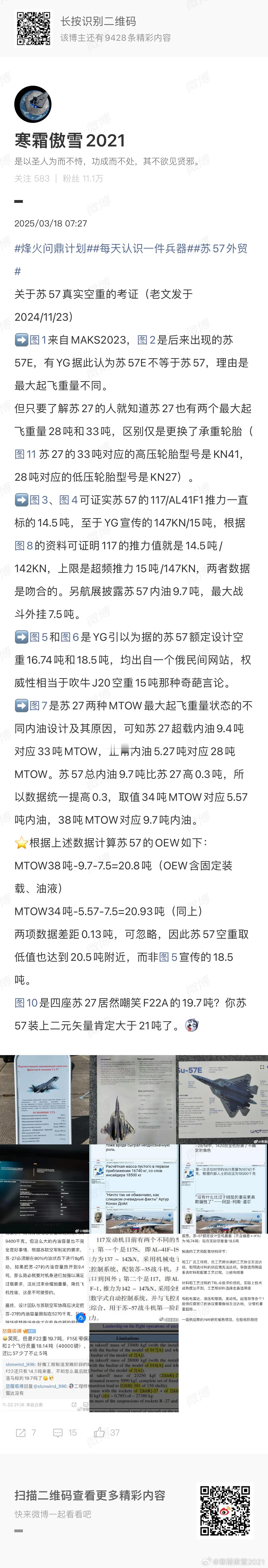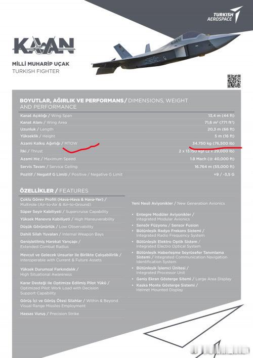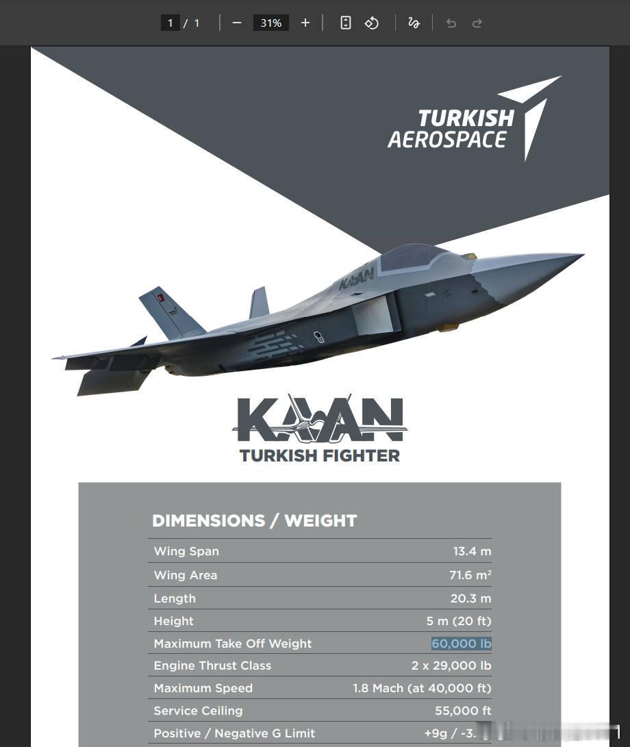 全球武器装备盘点武器装备烽火问鼎计划 KAAN前后矛盾数据盘点和使用重量考证➡️图1~图4是从TFX/MMU~KAAN时期土耳其三易其稿的第五代战斗机方案尺寸变化:机长从19米先增加到21米再缩短到20.3米(略短于20.6米的YF23)、翼展从12米增加到14米再缩短到13.4米,机高从6米降低到5米。航发从与乌克兰联合研制9.5吨的AL9500F(图13)改为从GE公司进口13.5吨的F110GE129(图14)。⭐️以上变化省流:TAI早期只想做一个略小于F15尺寸的飞机、后面因为政治需求水多加面变成计划服役的地球最大五代机项目(排除不服役的米格1.44、苏47、雪鸮、YF23)、然后在没上铁鸟台(图9)没有液压系统测试没有机身强度静力测试的三无条件下强行试飞2次起落,起飞时平尾严重颤振、整体座舱盖增加外加强筋等魔幻操作后,TAI终于发现P0滚装机头阻超标严重、不得不P1机高从6米降低到5米、这就进一步压缩了MURAD600的雷达罩直径。同时发动机的变化也极大增加了未来KAAN类似LCA的菊花残困境,LCA因美国卡F404发动机而地面交付6架无发动机LCA MK1A严重落后隔壁同级别的枭龙block3已经交付30➕。➡️在KAAN三易其稿的方案变化后,最令人匪夷所思的是MTOW居然有2个(图3、图4)分别是27吨/6万磅和34.5吨/7.65万磅。⭐️历史上有2种MTOW的战机是有先例的、例如著名的苏27机长翼展都比KAAN更大的尺寸也有28吨(正常内油5.27吨)和33吨(超载内油9.4吨),苏27搞2个MTOW的原因看图8是为了妥协西伯利亚大航程指标和战斗机格斗推比指标,避免因为增加超载油所需的额外强度增重导致飞机整体变重、对发动机推力造成更大压力而恶化推比。相对应的两种状态下苏27需要更换KN23和KN41两种承重轮胎(图6)。➡️图7曾经有人嘲笑J11B的MTOW 28吨是不是沈飞技术不如苏霍伊?这是污蔑。沈飞的J11B和苏27正常油状态MTOW相比一吨没少,YG赢学显然故意隐藏了苏27的难言之隐,J11B没有标超载油状态MTOW或者没仿制承重更强的KN41轮胎而已、超载油状态的苏27推比堪比轰炸机、完全不能格斗,需要放油到5吨才能格斗。用户使用J11B过程中也经常不装超载油。➡️图5为本博在2024年11月对苏57的空重和两个MTOW 34吨、38吨的拟合考证得出苏57的OEW使用重量约20.5吨。➡️那么KAAN既然和苏27、苏57一样出现两个MTOW,它使用重量多少呢? ⭐️根据KAAN主起落架支撑点与F15相同的特点(图15)、P0在空载状态前起落架液压杆压到没有余量的照片(图10)、KAAN采用分散布置的4弹舱结构(图11,类似弹舱布局的苏57根据图5测算也达到20.5吨使用重量、图12证明P0进一步座舱盖增重。 合理推断KAAN的结构设计部分抄了F15的承重设计,参考F-15C的内油量(6吨)作出如下推断:KAAN使用重量(OEW)约为 20.9 吨。➡️关于34.5吨MTOW的数据拟合:● 推导依据:34.5吨(MTOW) - 6吨(F-15C级内油) - 7.5吨(武器) = 21吨。这是一个非常高的空重数据(比F-22还重),意味着该机结构极其笨重,推重比会很低。➡️关于27吨 MTOW的数据拟合:● 在空重高达21吨的前提下,27吨的起飞重量仅比空重多了6吨。 这意味着27吨 MTOW 实际上就是“空重 + 内油”的重量。 如果要挂载7.5吨武器,起飞重量必然达到34.5吨。为什么没计算27吨状态携带武器载荷?你看图10的P1装配和起飞状态液压杆位置对比可知P0在0外挂空载状态下前起落架压到底了,说明仅空载P0就接近了KAAN的MTOW,那只能是对应27吨,如果算上首飞一般少带油,KAAN只会更重。➡️结论:KAAN的27吨 MTOW 可能对应的是无外挂、仅内油的转场或轻载巡逻状态;而34.5吨 MTOW 则是内油 + 外挂的满载状态。⭐️总结:KAAN OEW状态使用重量21吨、内油6吨、最大外挂7.5吨较为符合实物状态。在“结构较差 + 参考F-15C内油”的设定下,KAAN的空重被推高至 20.9吨,这是一个典型的F117A式设计或结构设计不成熟的表现。