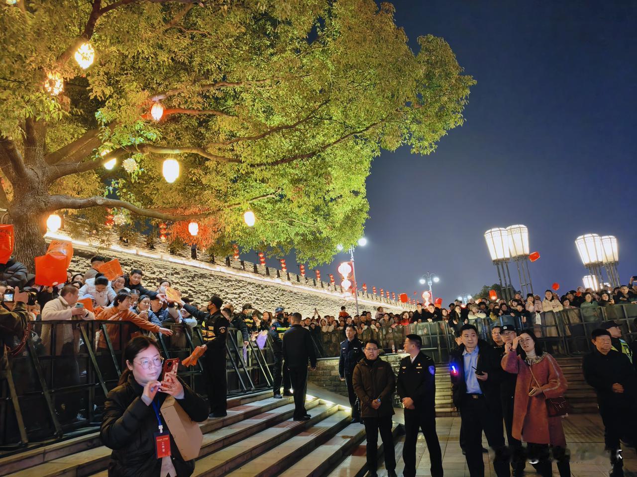 千灯临汉 古城焕新——2026襄阳古城新春活动浓情启幕! 腊月二十七,恰逢2月14日,襄阳临汉门直接被快乐和热闹包围! 晚上7点半,新春活动准时开场,舞狮率先炸场,红狮腾跃、锣鼓喧天,紧接着歌舞演唱轮番上阵,非遗火壶表演闪亮登场,火光冲天,寓意火除邪祟,万家安宁,把新年的好运和红火直接拉满! 今天天气也格外给力,江风习习,不冷不热刚刚好。临汉门城楼上、城墙上、汉江边、临汉门前,放眼望去全是人人人人人! 有甜蜜牵手的情侣,有全家出动的一家人,还有超多外地朋友专程赶来打卡。襄阳电视台主持人王吉峰一喊“有没有外地朋友”,现场直接沸腾,欢呼声一浪高过一浪,氛围感直接拉满! 最最激动人心的时刻,就在晚上8点准时到来!随着主持人响亮倒计时:5、4、3、2、1,放!临汉门城楼上、城墙之上、汉江边、广场前,上万市民同时松手,千盏印有“侠义襄阳”的孔明灯一齐升空! 郭靖黄蓉”的身影也在人群中闪现,和大家一同点亮心愿灯,让武侠情怀与新春暖意撞了个满怀。大家把对新年的美好期盼、对家人的平安祝福、对生活的幸福心愿,全都装进这一盏盏灯里,让温暖与浪漫一同飞向夜空。 汉江波光粼粼,城墙上的红灯笼与空中的孔明灯交相辉映,灯火映着汉江,心愿照亮古城,这才是襄阳最有烟火气、最有侠义味的新年仪式感!