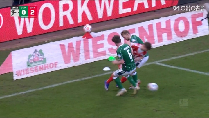 直播吧02月14日讯德甲第22轮,拜仁慕尼黑客战不莱梅。比赛第60分钟,基米希穿裆对手后进入禁区,随后拉球过人被关门放倒,主裁判就在眼前,示意没有点球。