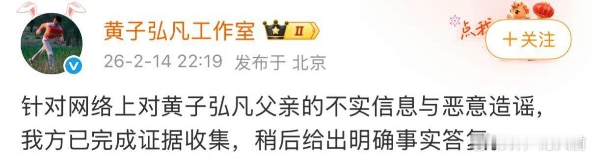 黄子弘凡工作室发微博辟谣,说会解释此事