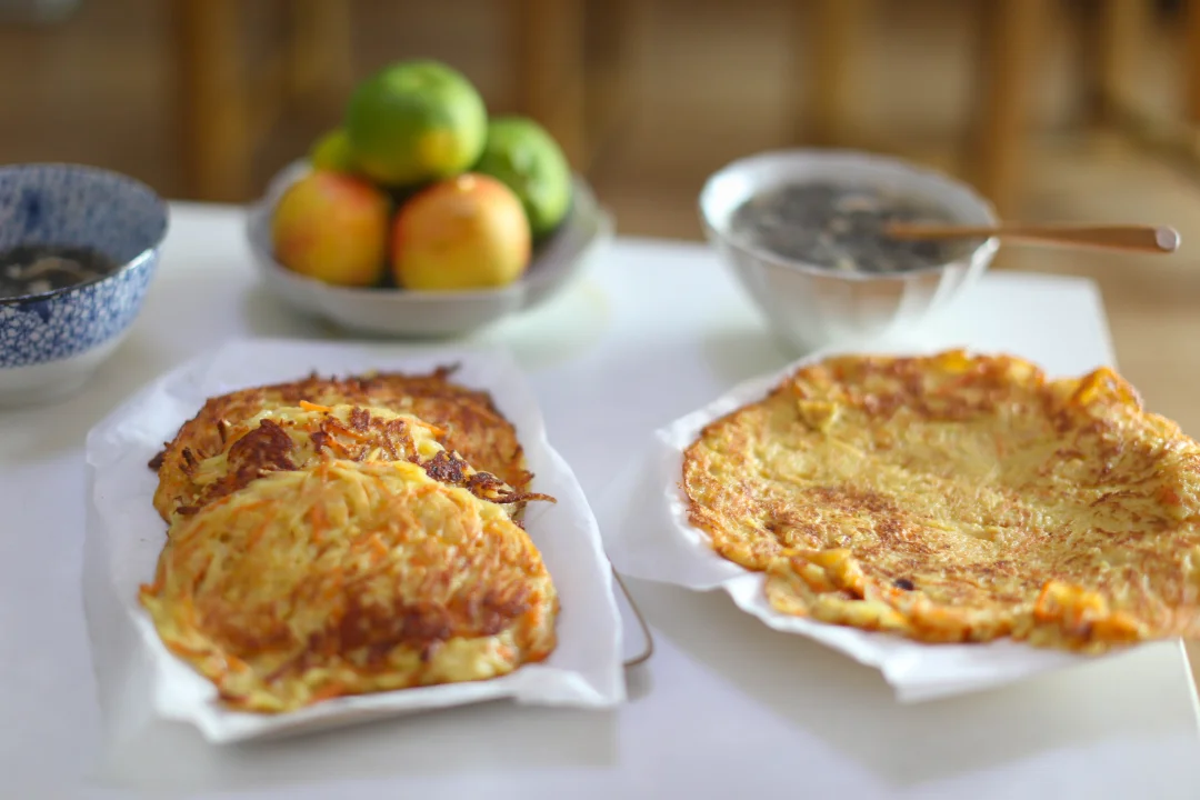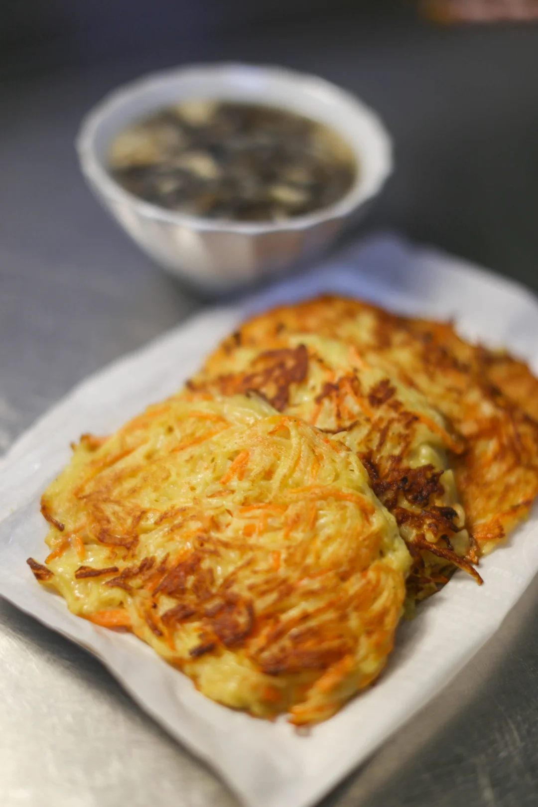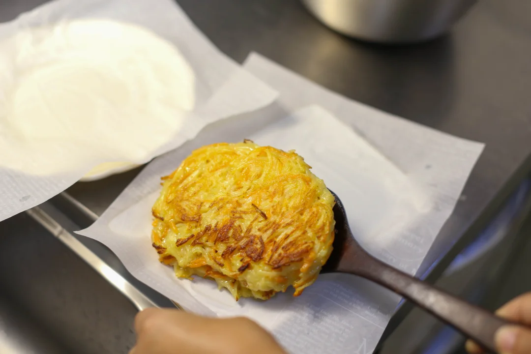• 9:做好的土豆煎饼盛到盘中即可,搭配紫菜鸡蛋汤,一顿简单且容易操作的完美早餐大功告成。