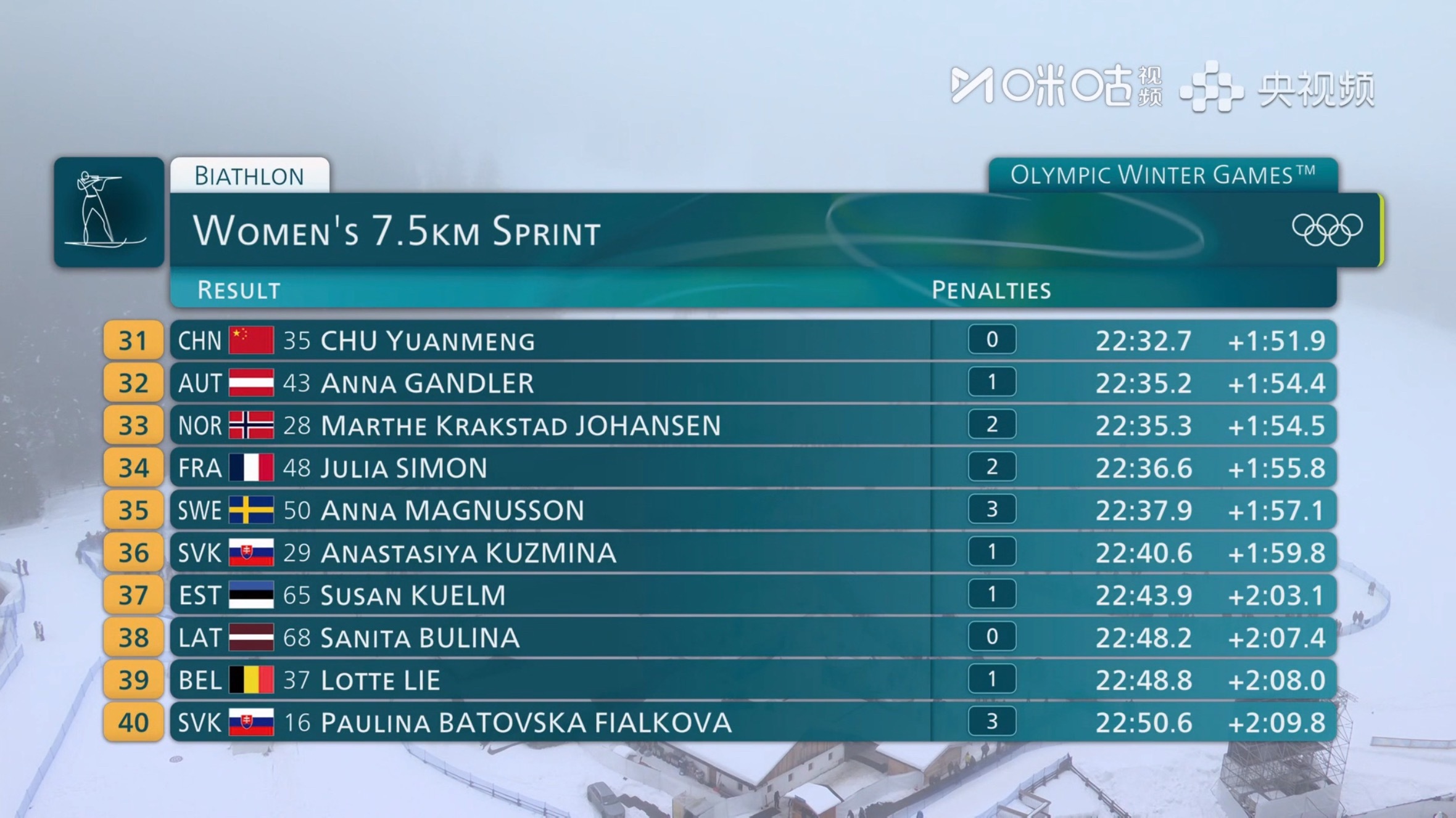 #褚源蒙冬季两项女子短距离第31##孟繁棋冬季两项女子短距离第48#
