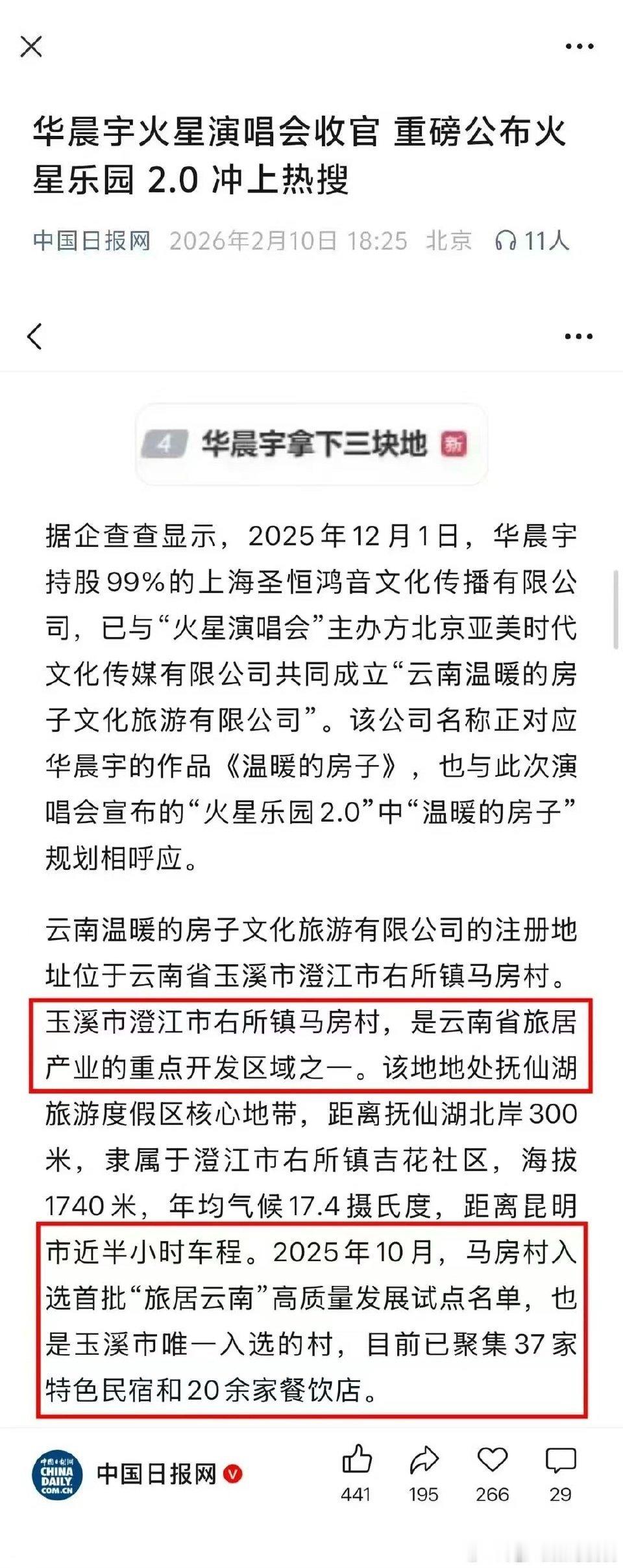 华晨宇拿下三块地文旅推动支持 华晨宇这波操作真的太有意义了,火星家园不只是歌迷的期待,更能带动地方发展,用热爱点亮一座城,这才是偶像该有的担当。