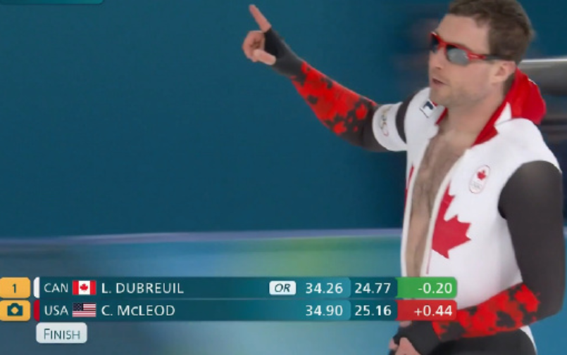 速滑男子500米决赛:加拿大选手迪布勒伊刷新奥运纪录