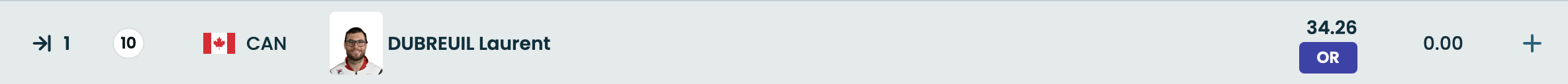 加拿大选手劳伦特-迪布勒伊第10组出战,滑出34.26的成绩,刷新北京冬奥会高亭宇保持的34.32的奥运纪录。