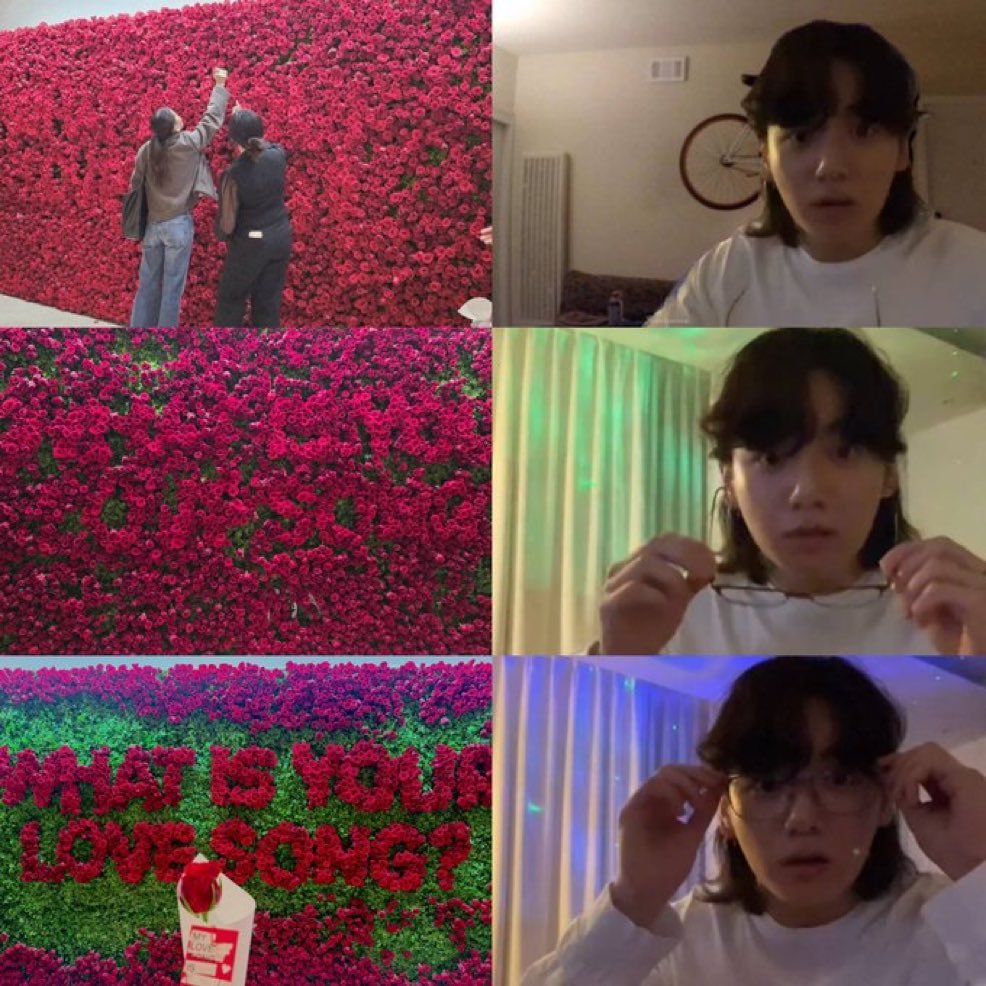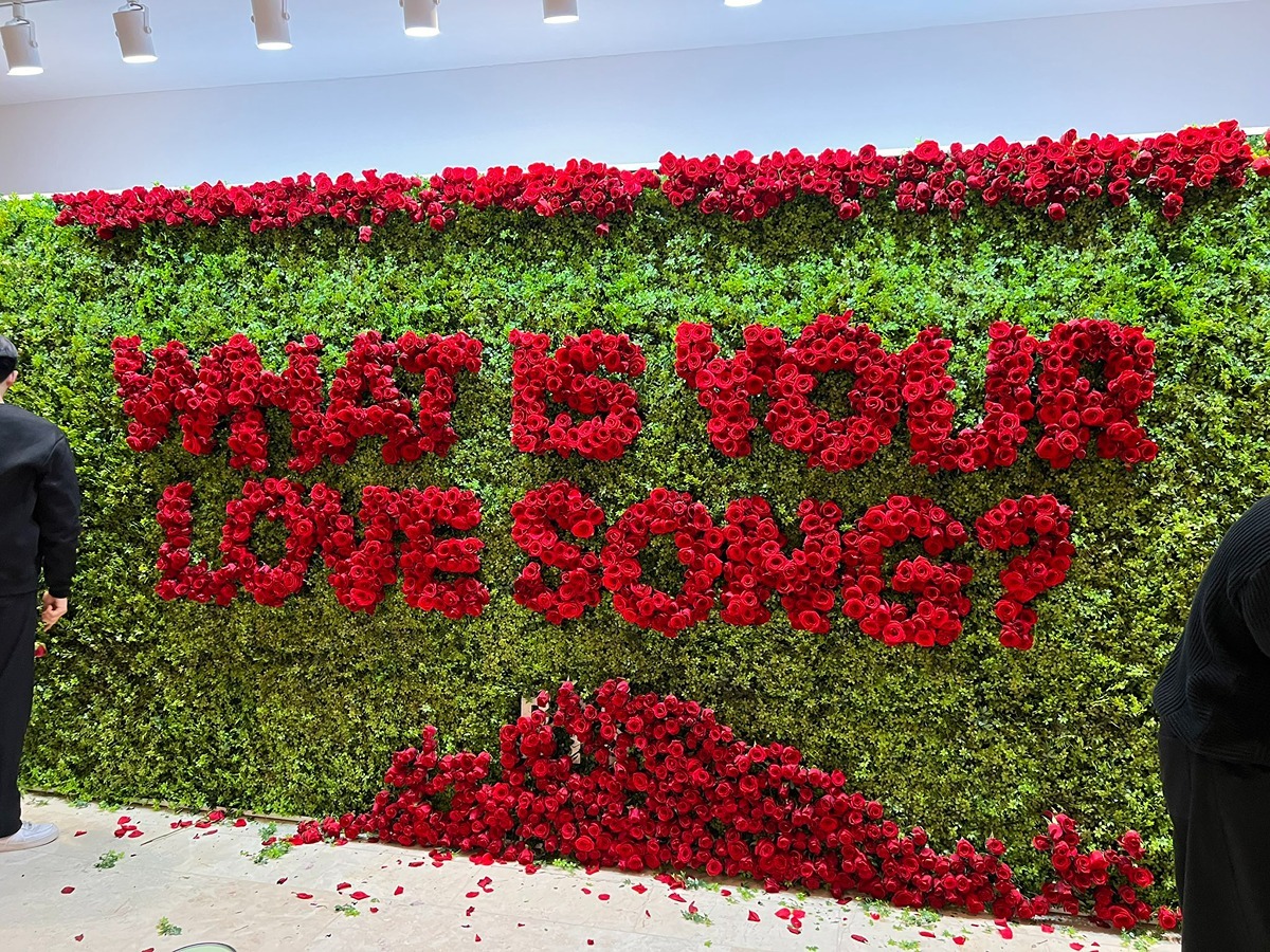 - 作为情人节惊喜,BTS在COEX准备了7500支玫瑰- 7500支玫瑰拿完后惊喜出现了“WHAT IS YOUR LOVE SONG?BTS”