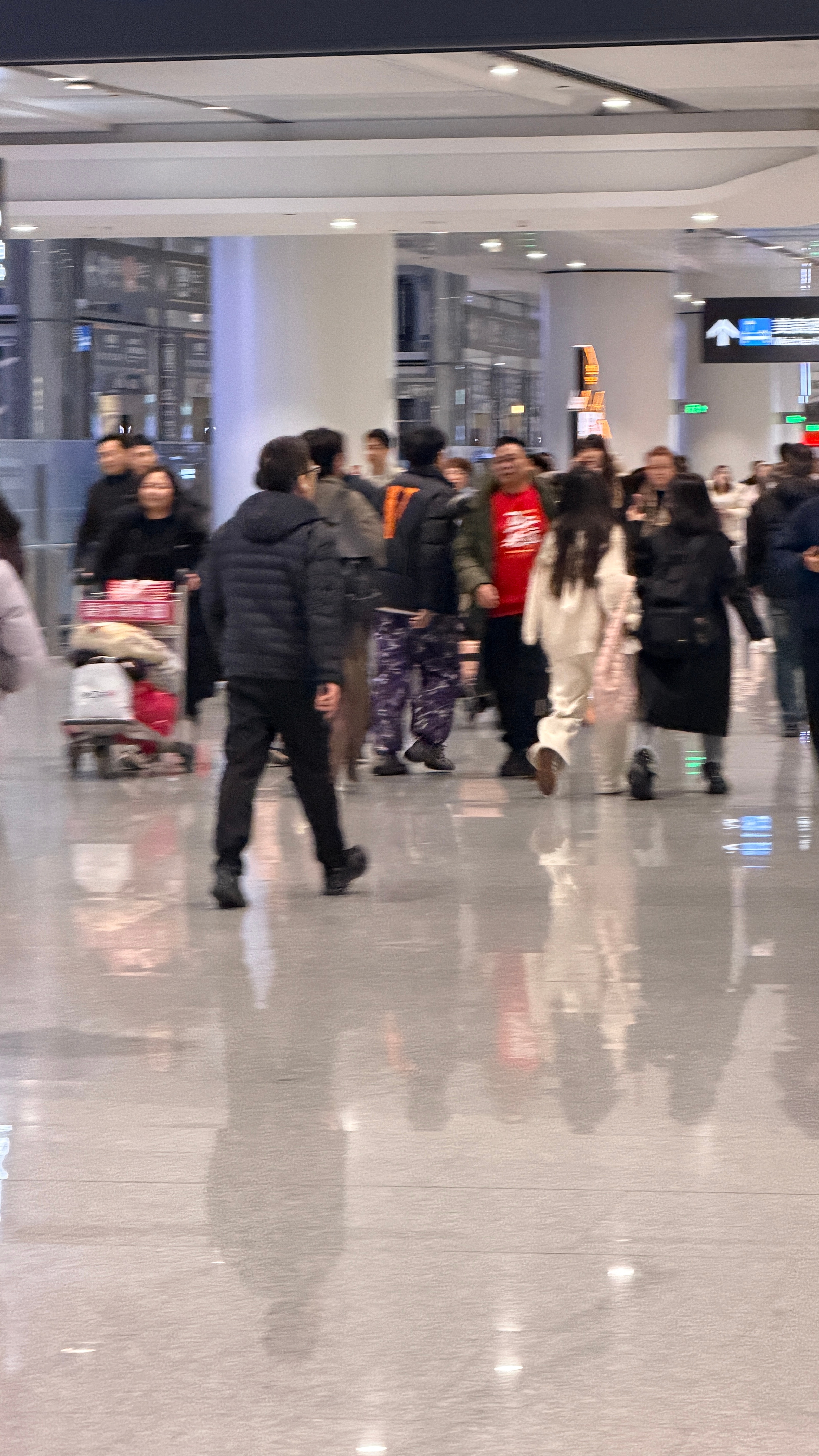 这是哪个明星吗 几个女粉丝围着举着pocket一直拍 廊坊·北京大兴国际机场航站楼(三层国内快捷出发)