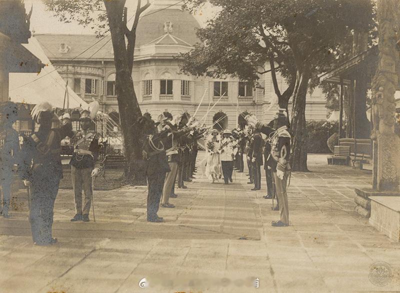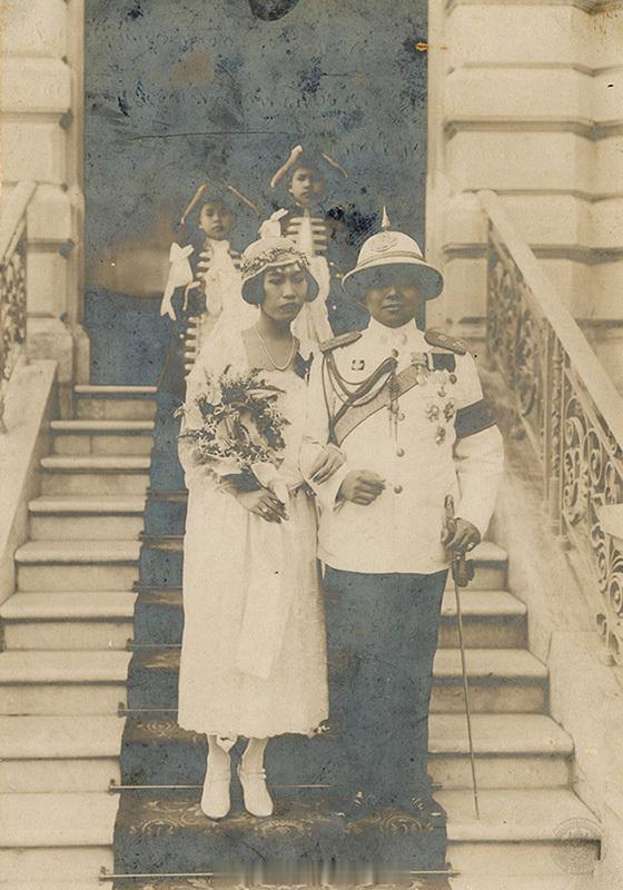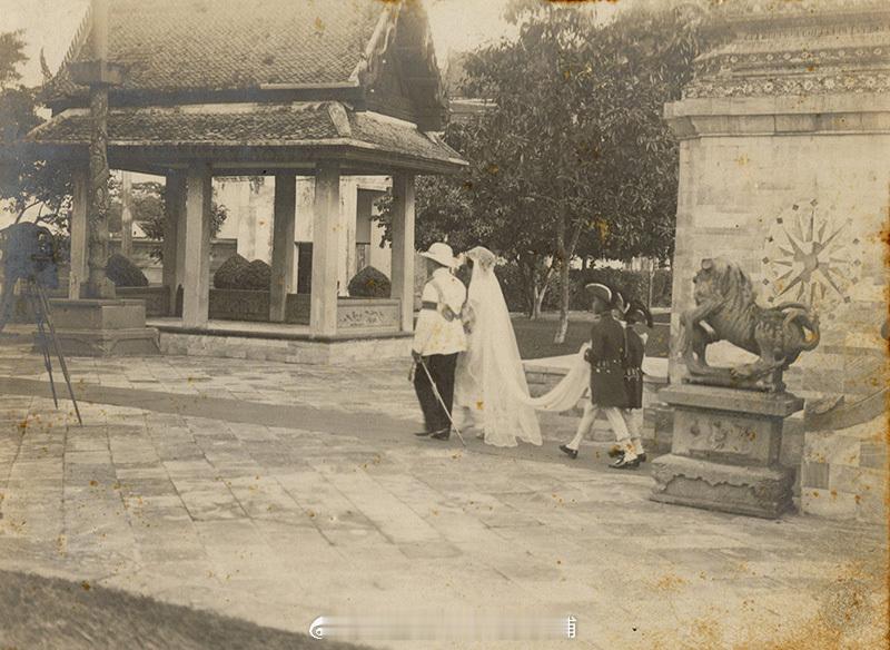 王室王室泰国王室暹罗往事 老照片:1924年8月10日,拉玛六世和最后一位妻子苏瓦塔娜的婚礼。看过四朝代的瓜友们都知道,六世时期暹罗宫廷西化程度极高,人人都以尊崇西洋风尚为荣,从六世当年的婚礼就可以看出,要不是新人的肤色长相,这穿着,这婚礼布置,随便说是个西人婚礼都没问题,那个时代整个暹罗社会的风气也是瞧不起本国的民族文化,上层社会洋气可掬,下层社会虽然无力仿效也非常艳羡,这种一切向西的审美主流是要一直等到红唇姐找到伯尔曼打造新的泰式礼服,在国际舞台上大放异彩才开始好转