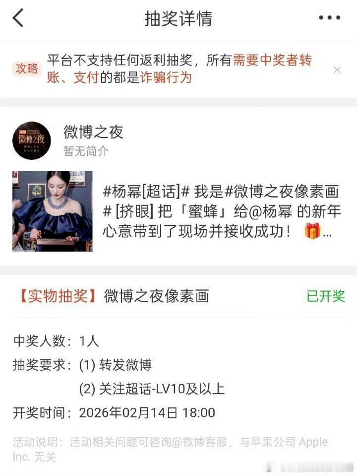 微博之夜抽奖要求抽杨幂超话十级结果被顶着肖战头像的人抽到了,而且还真是杨幂超话十