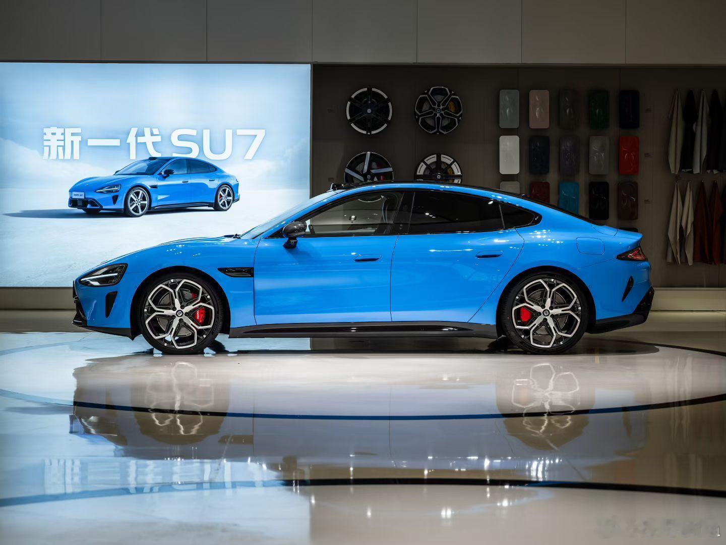 小米SU7新款到店了,果然是用新的卡布里蓝做展车,这个蓝色很适合成为主销色!