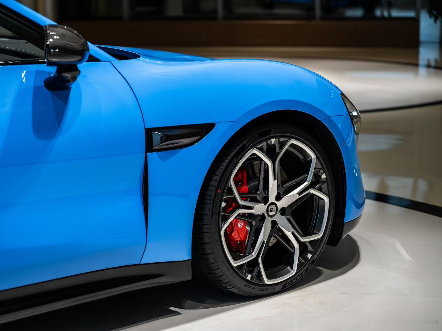 新小米Su7已到店,只能静态展示,但不影响去欣赏他优美的车身线条和设计语言。看这卡布里蓝的满满年轻动态,双层锻造梅花轮毂,太喜欢了!小米汽车