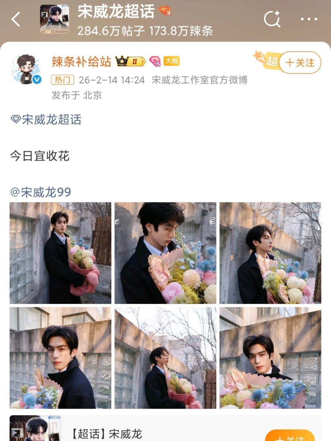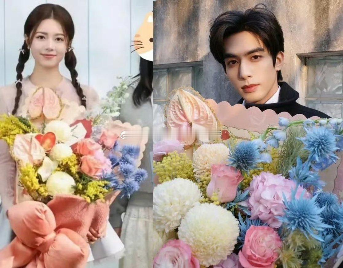 宋威龙工作室今天情人节的营业图,cpf发现和赵今麦之前抱的是同一束花龙麦这对也是
