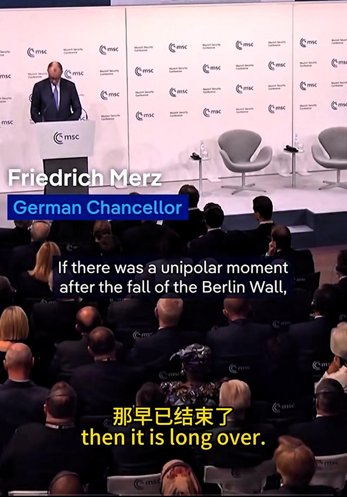 德慕会默茨指出:“欧洲刚刚结束了一段远离历史的假期。” 2月13日,德国总理默茨在出席慕尼黑安全会议(MSC)致辞时称:“基于权利与规则的世界秩序已不复存在。” 默茨同时表明,美国对全球的领导地位“已经遭到挑战,甚至可能已经丧失”。他十分明确地指出,“美国的MAGA(让美国再次伟大)文化之争”并不适用于欧洲,还补充道,“当言论违背人类尊严和基本法时,言论自由就到此结束。” 他认为:“我们不相信关税和保护主义,而是相信自由贸易。我们坚守气候协议和世界卫生组织,因为我们坚信,全球挑战只有携手才能解决。” 默茨毫不留情地将矛头指向美国。 他称基于权利与规则的世界秩序已不复存在,还指出美国领导地位遭挑战甚至可能丧失。德国慕尼黑安全会议“一直是世界政治形势的晴雨表”,这反映出国际格局的巨大变化。 从他的讲话中能看出欧洲的想法,欧洲想在大国政治时代维护自身利益。比如他提到与法国总统探讨建立欧洲联合核威慑力量,还说要重建与美国的盟友关系,却又强调建立强大、自给自足的欧洲支柱,显然这是想摆脱对美国的过度依赖。而美国国务卿鲁比奥也认同旧秩序终结,可见欧美旧秩序确实变了,美国变的唯利是图,六亲不认,而欧洲则开始学着在美国面前站着说话,不过两人对现状归因和未来路径的看法却不同。看来国际秩序的重塑已势在必行,至少欧美盟友之间的裂痕已经开始蔓延。