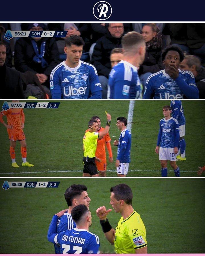 【莫拉塔疑似和法布雷加斯口角】科莫1-2紫百合,莫拉塔替补上场后57分钟替换上场,88分钟89分钟两次非战斗黄牌,被罚下场,下场后疑似喋喋不休,和法布雷加斯略有口角,动图3很明显,法布雷加斯让他赶紧离开。