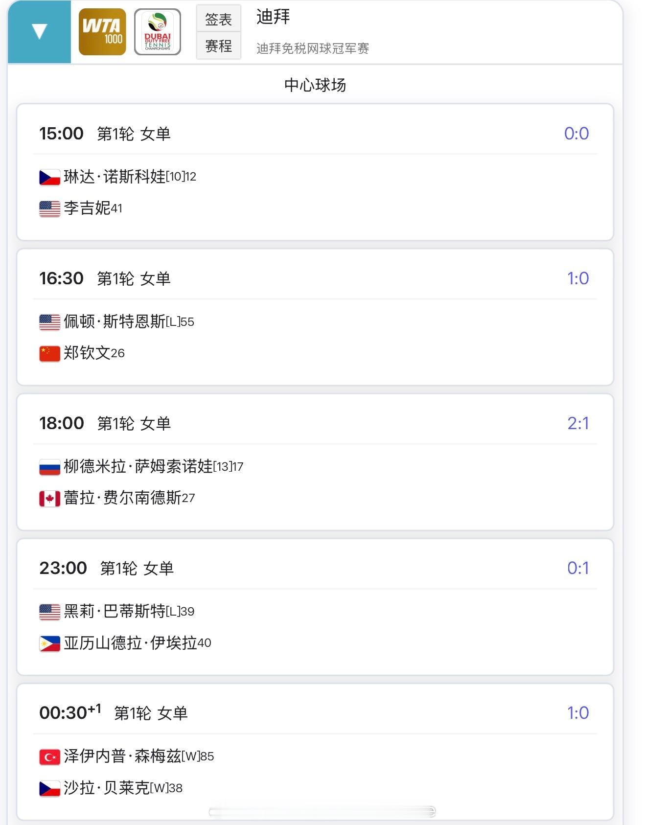 16:30郑钦文vs斯特恩斯 23:00埃拉vs巴蒂斯特