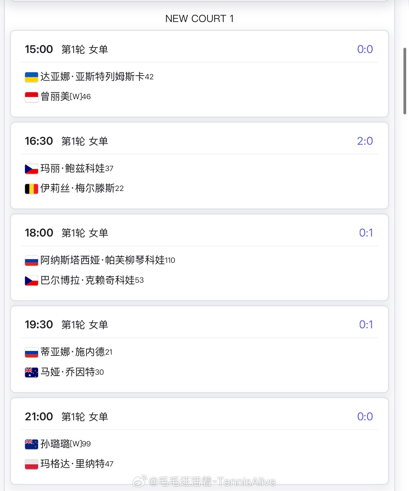 【今日比赛赛程+直播赛程】16:30郑钦文vs斯特恩斯 23:00埃拉vs巴蒂斯