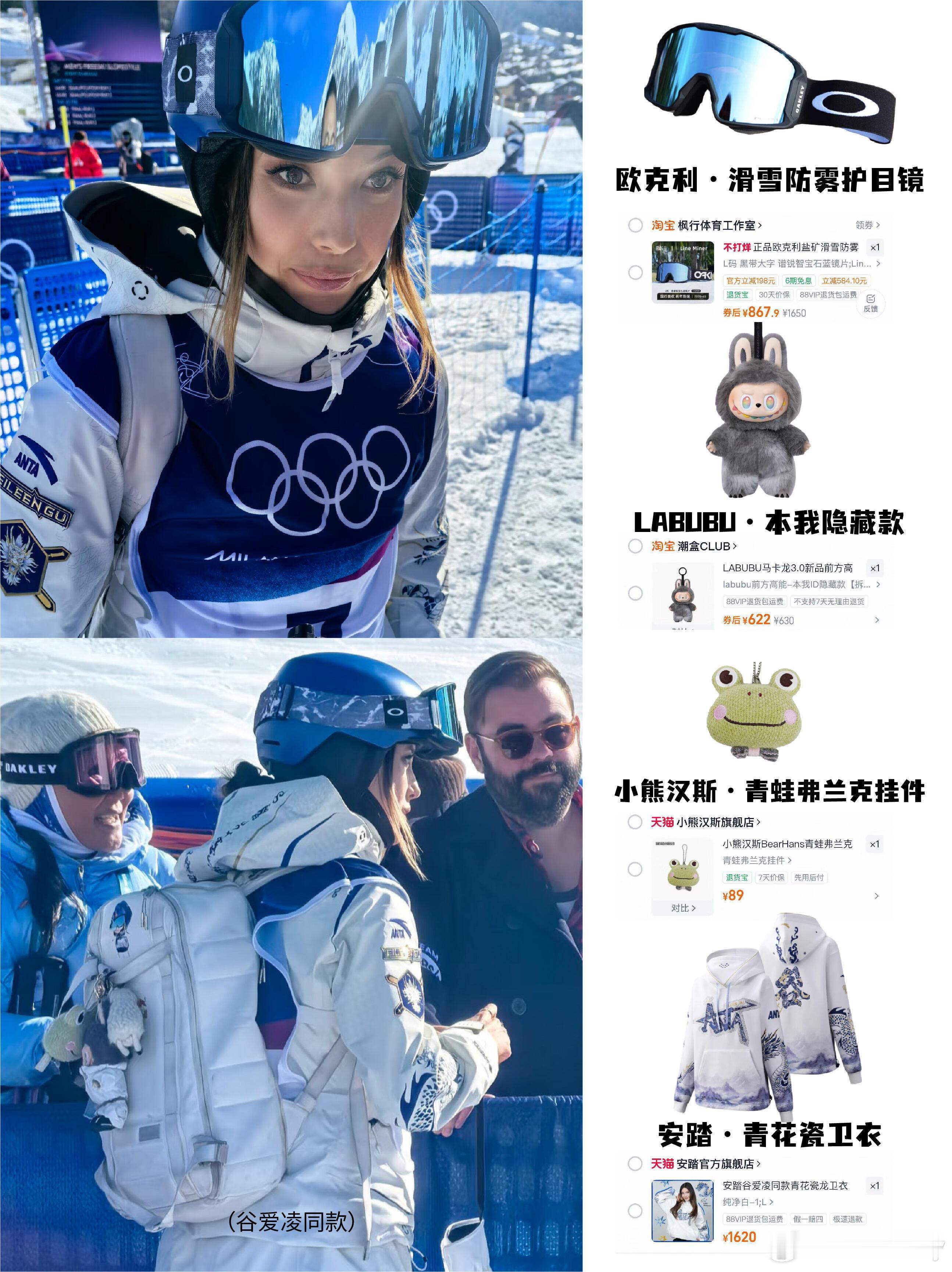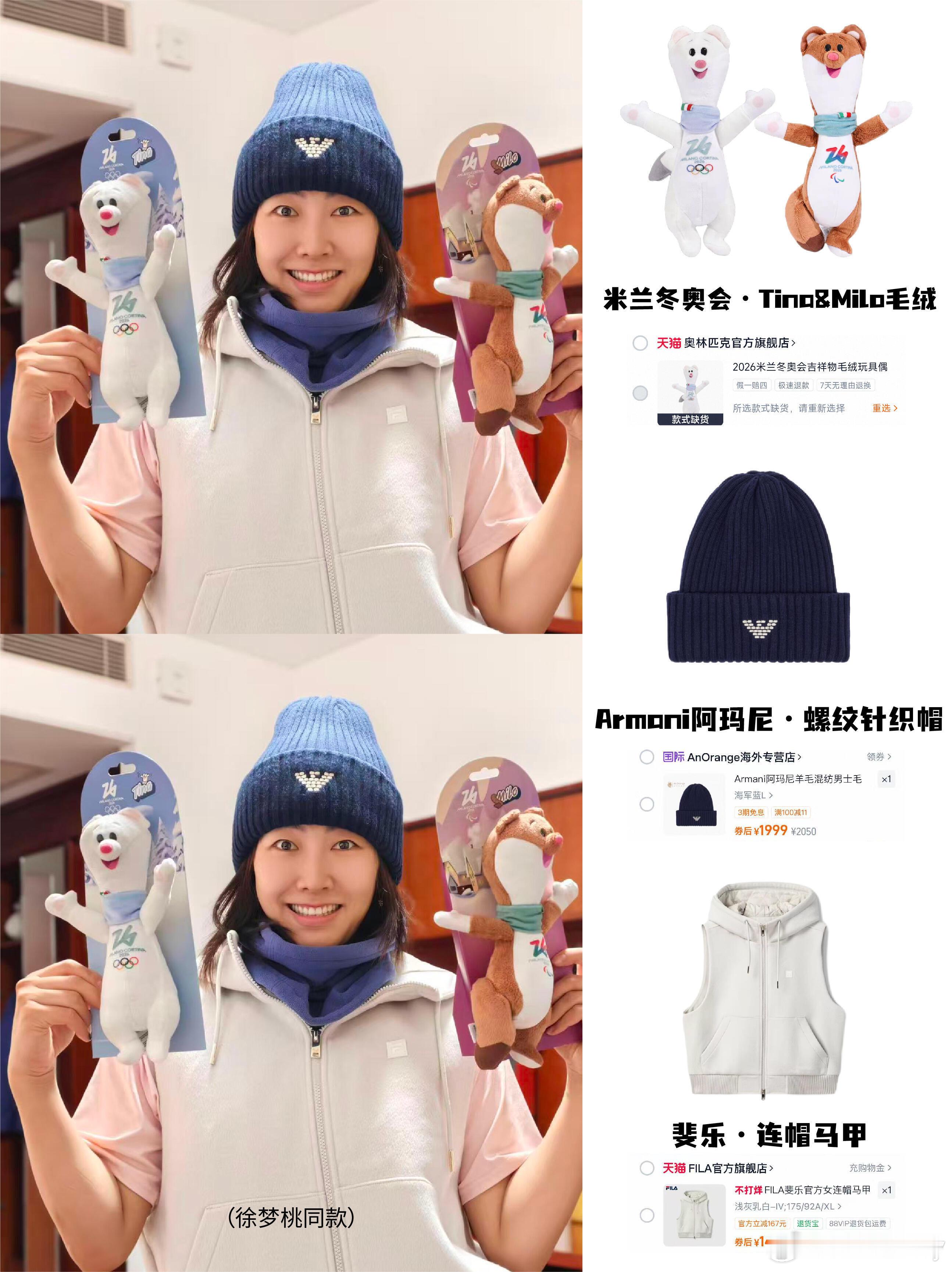 谷爱凌|青花瓷国风封神白底蓝花青花瓷训练服把东方美学穿下雪道,高级又飒爽;包包挂件软萌可爱,和青蛙公主适配度拉满,又美又有辨识度。徐梦桃|暖冬氛围感担当螺纹针织帽显脸小又百搭,承包冬日所有穿搭;人手一只的冬奥顶流Tina&Milo毛绒玩偶,软萌治愈,赛场内外都被可爱包围。金博洋|国潮帅气天花板红白配色领奖服大气提气,防风防水超实穿,国潮范儿直接拉满,日常出街也超吸睛。冬奥顶流必备冬奥顶流Tina&Milo毛绒玩具全员上头,运动员、观众、记者席都在抱!可爱到犯规~